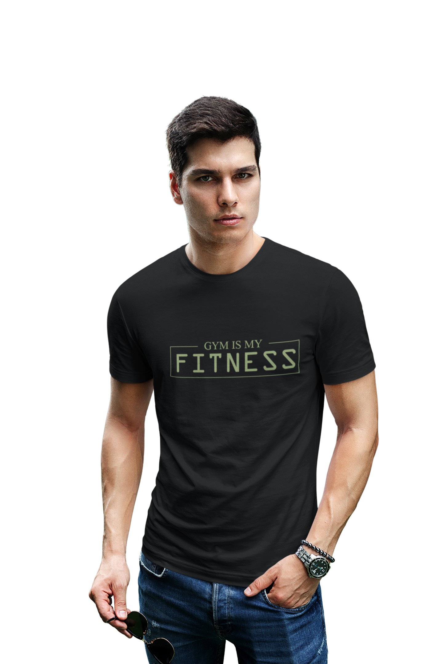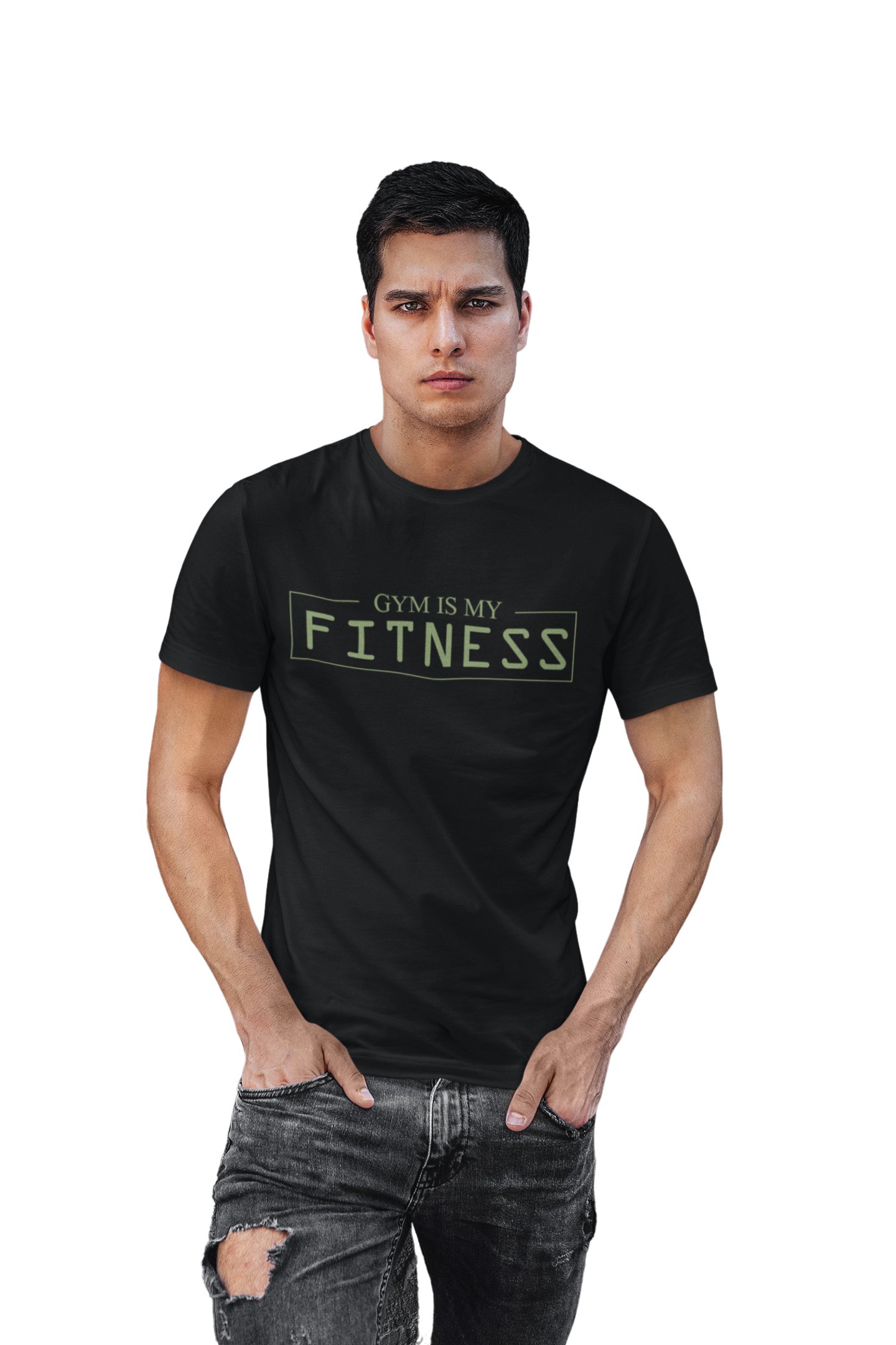 Gym is my Fitness, (BG Green), Round Neck Gym Tshirt (Black Tshirt) - Clothes for Gym Lovers - Suitable for Gym Going Person - Foremost Gifting Material for Your Friends and Close Ones