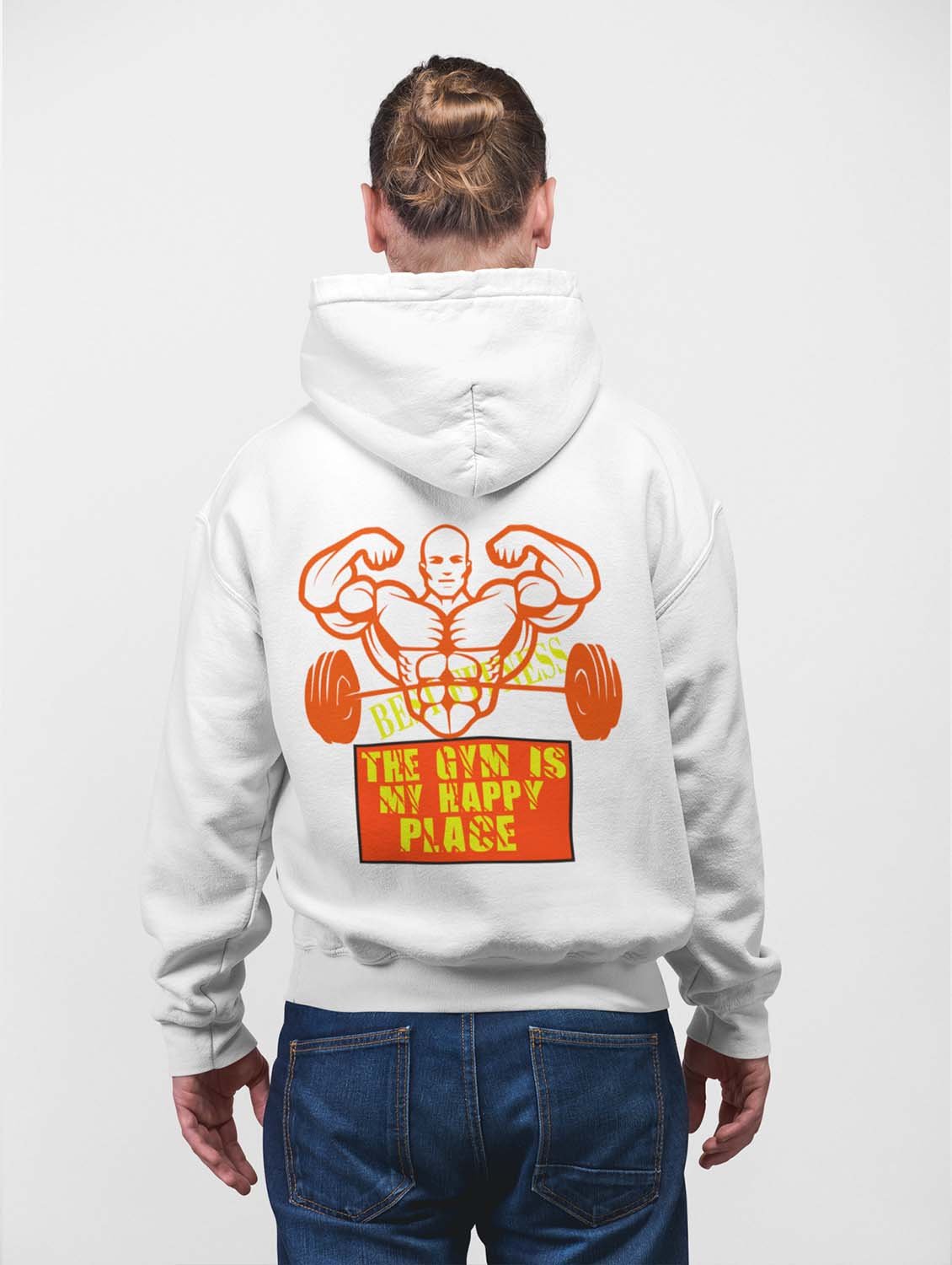 Gym Is My Happy Place printed artswear white hoodies for winter casual wear specially for Men