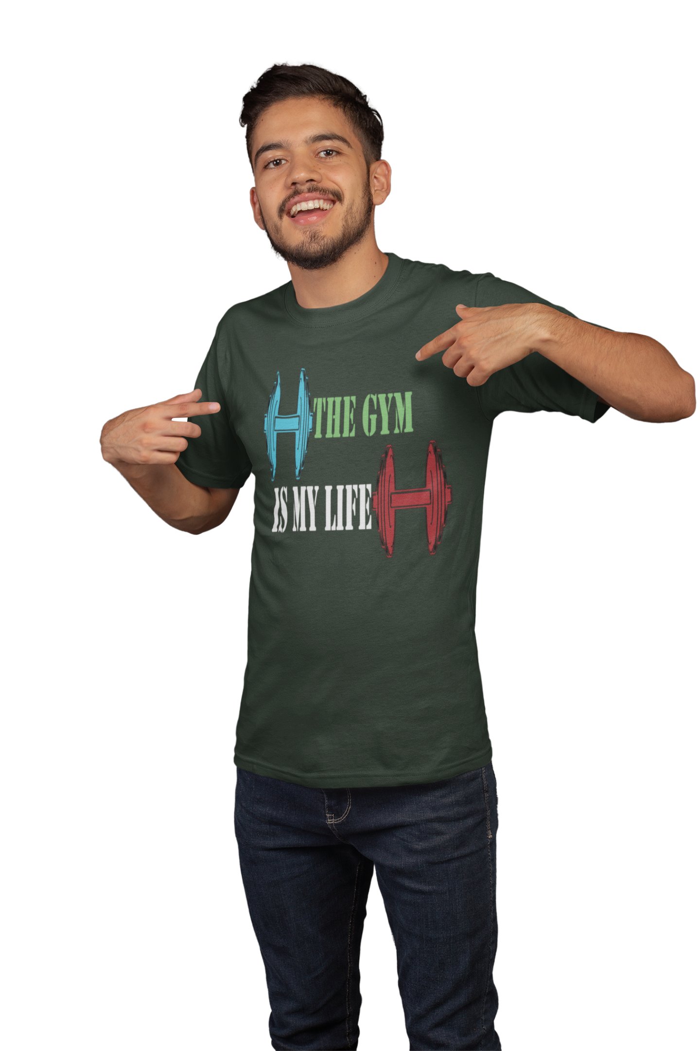 Gym is My Life, 2 Dumbles, Round Neck Gym Tshirt - Foremost Gifting Material for Your Friends and Close Ones