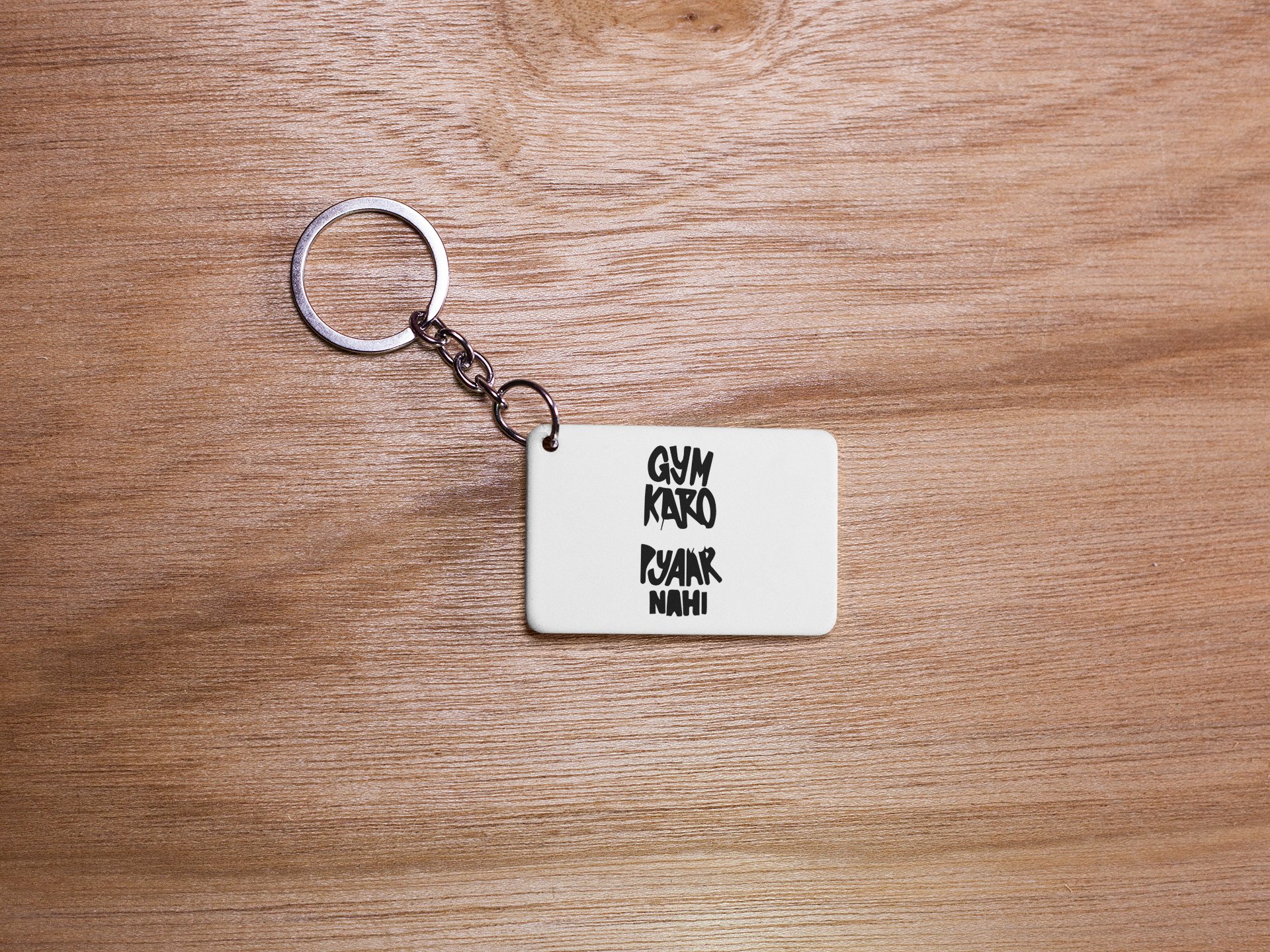 Gym Karo ,Pyaar Nahi -White -Designable Dialogues Keychain (Combo Set Of 2)