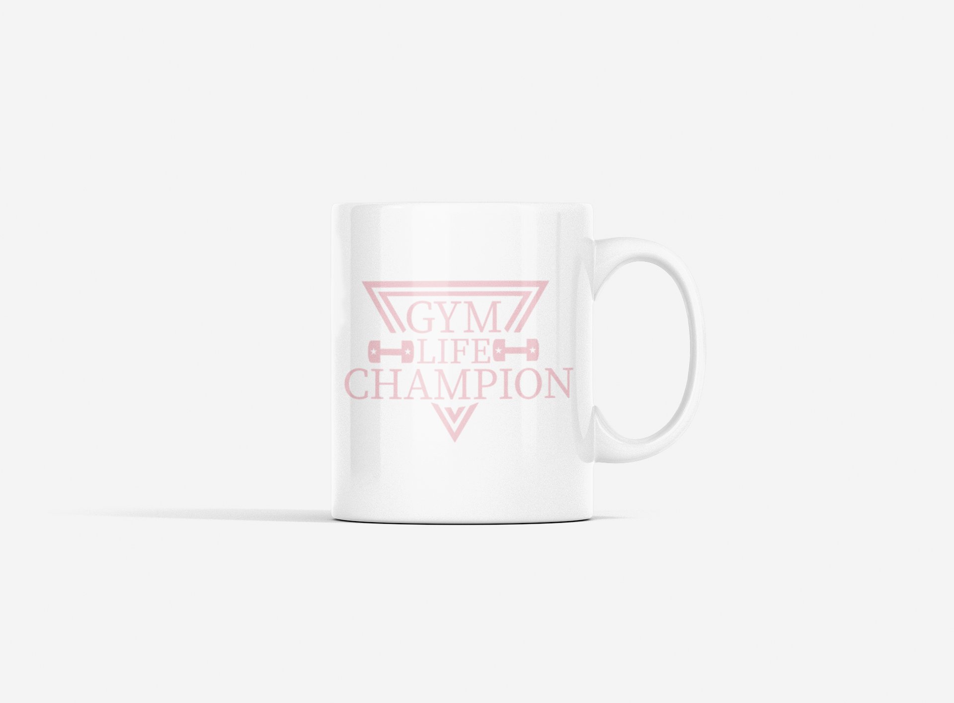 Gym Life Champion (BG Pink) - gym themed printed ceramic white coffee and tea mugs/ cups for gym lovers