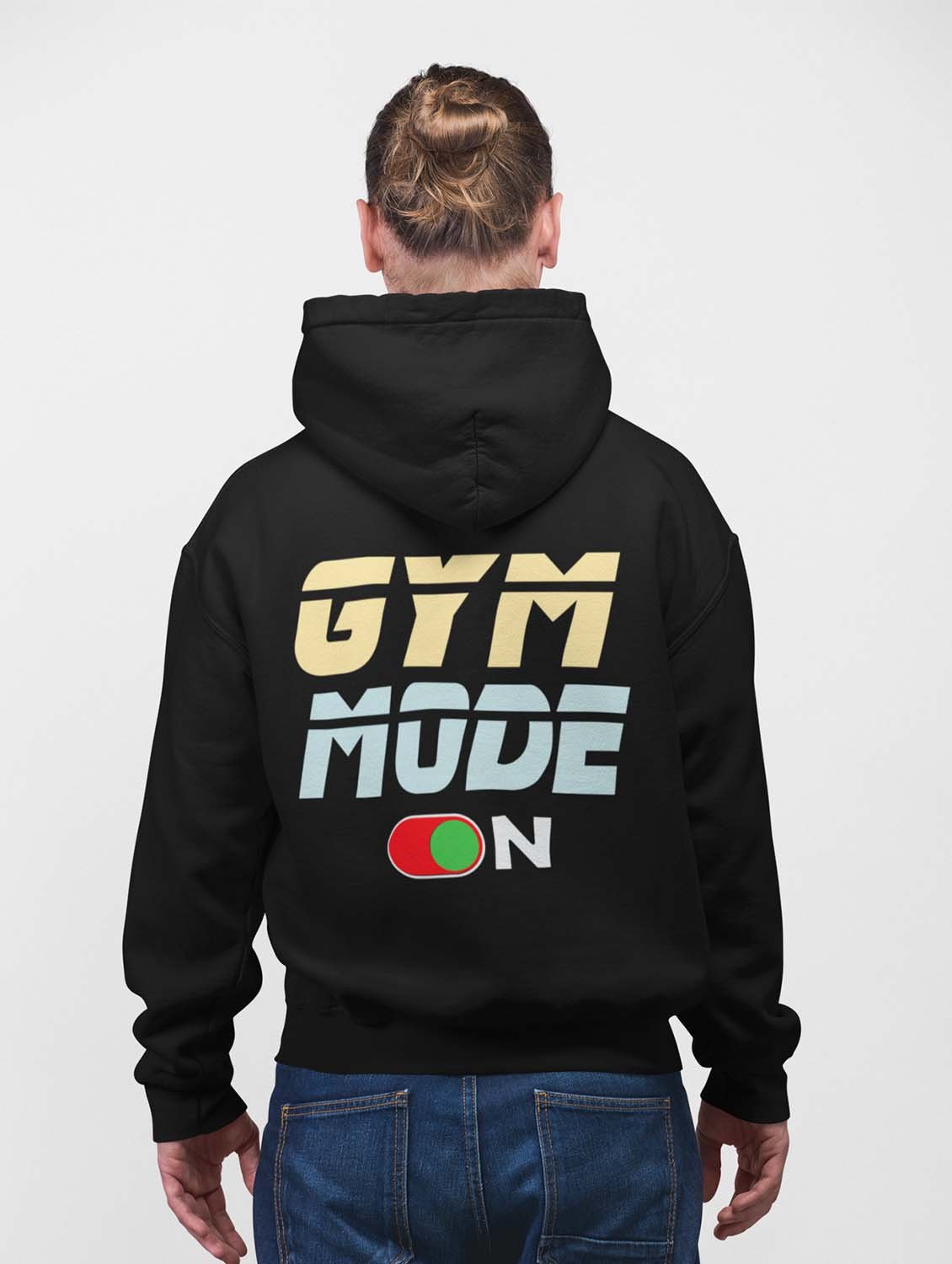 Gym Mode On, (BG Yellow& Blue)printed activewear black hoodies for winter casual wear specially for Men