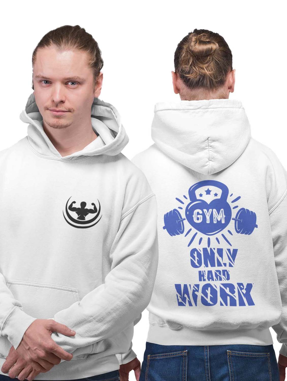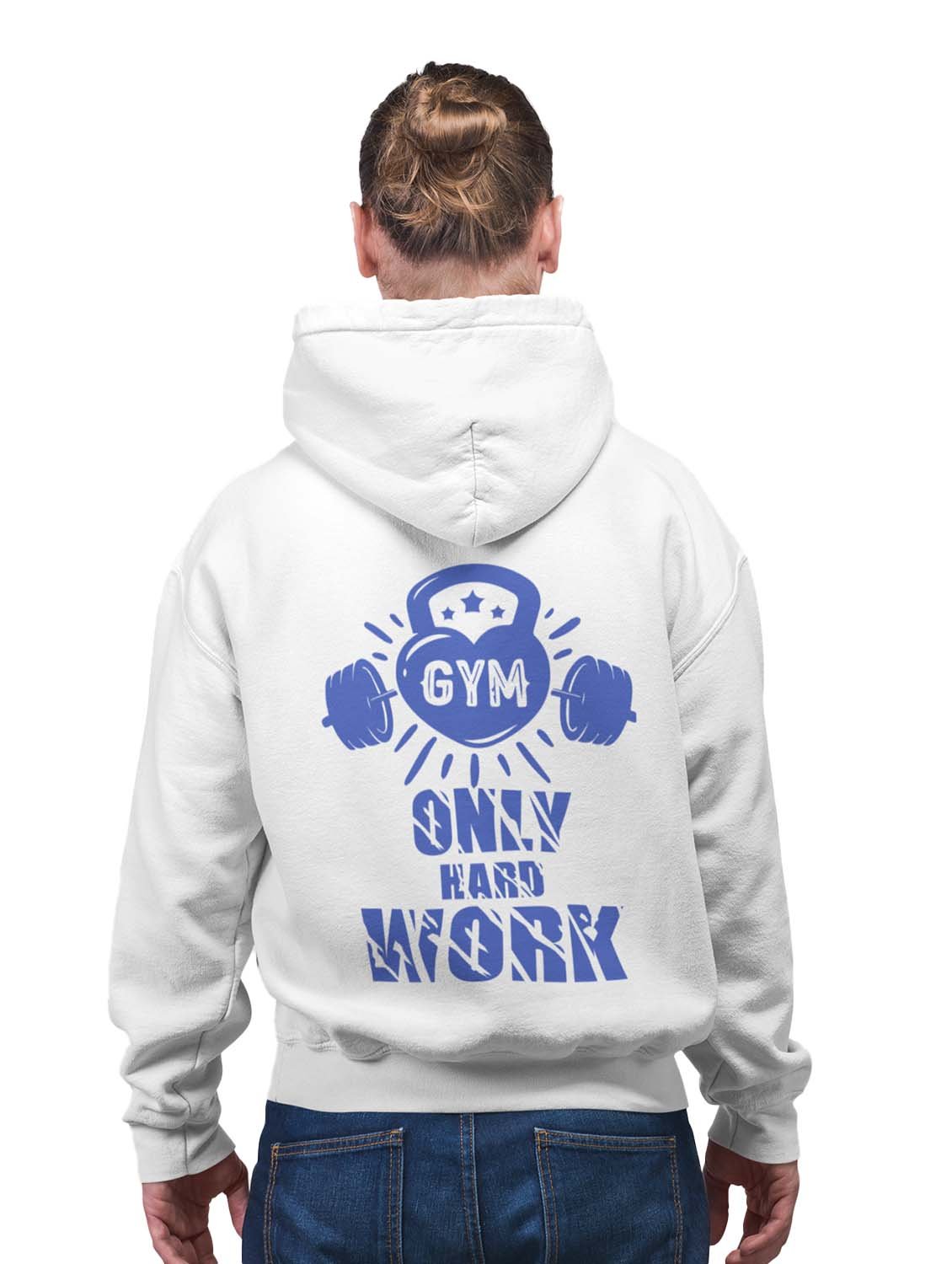 Gym, Only Hard Work printed artswear white hoodies for winter casual wear specially for Men