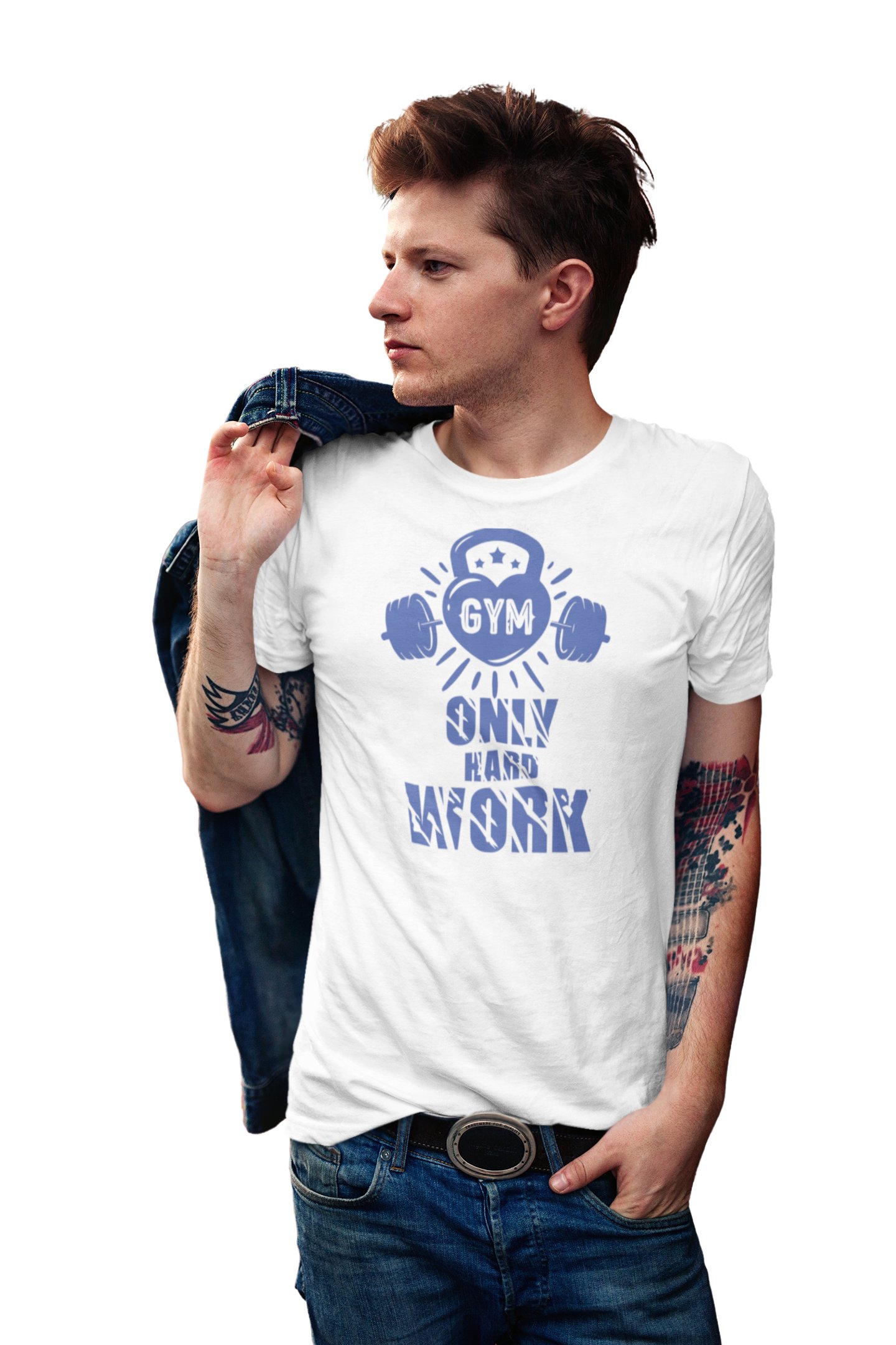 Gym, Only Hard Work, Round Neck Gym Tshirt (White Tshirt) - Clothes for Gym Lovers - Suitable for Gym Going Person - Foremost Gifting Material for Your Friends and Close Ones