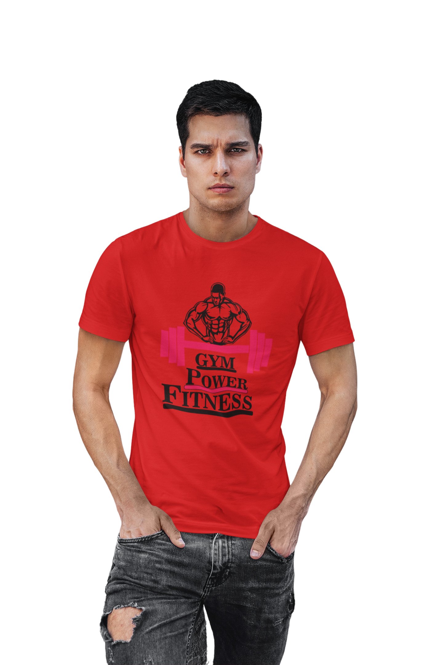 Gym, Power, Fitness, Round Neck Gym Tshirt (Red Tshirt) - Clothes for Gym Lovers - Suitable for Gym Going Person - Foremost Gifting Material for Your Friends and Close Ones