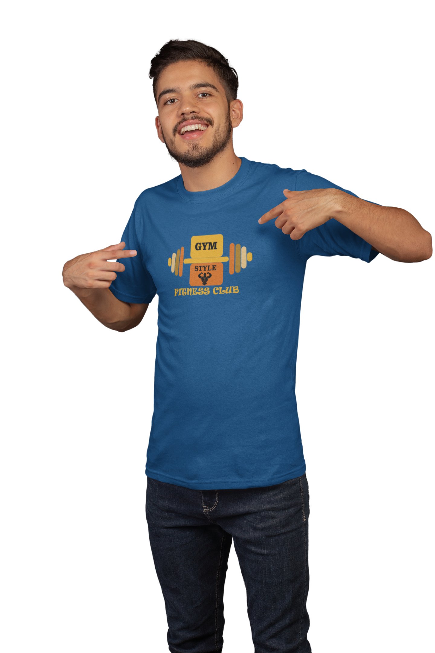 Gym Style, Fitness Club, (BG Orange and Yellow), Round Neck Gym Tshirt (Blue Tshirt) - Clothes for Gym Lovers - Suitable for Gym Going Person - Foremost Gifting Material for Your Friends and Close Ones