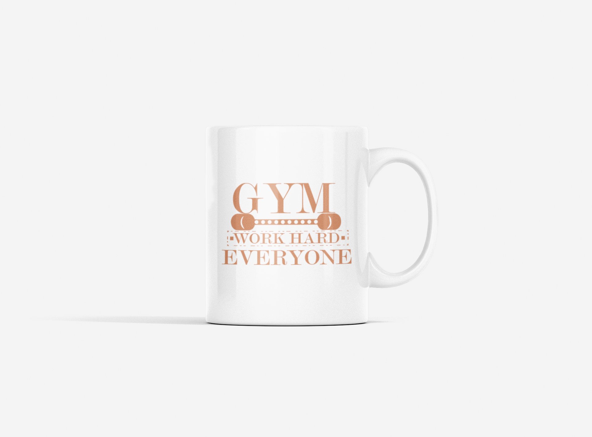 Gym, Work Hard Everyone, (BG Brown) - gym themed printed ceramic white coffee and tea mugs/ cups for gym lovers