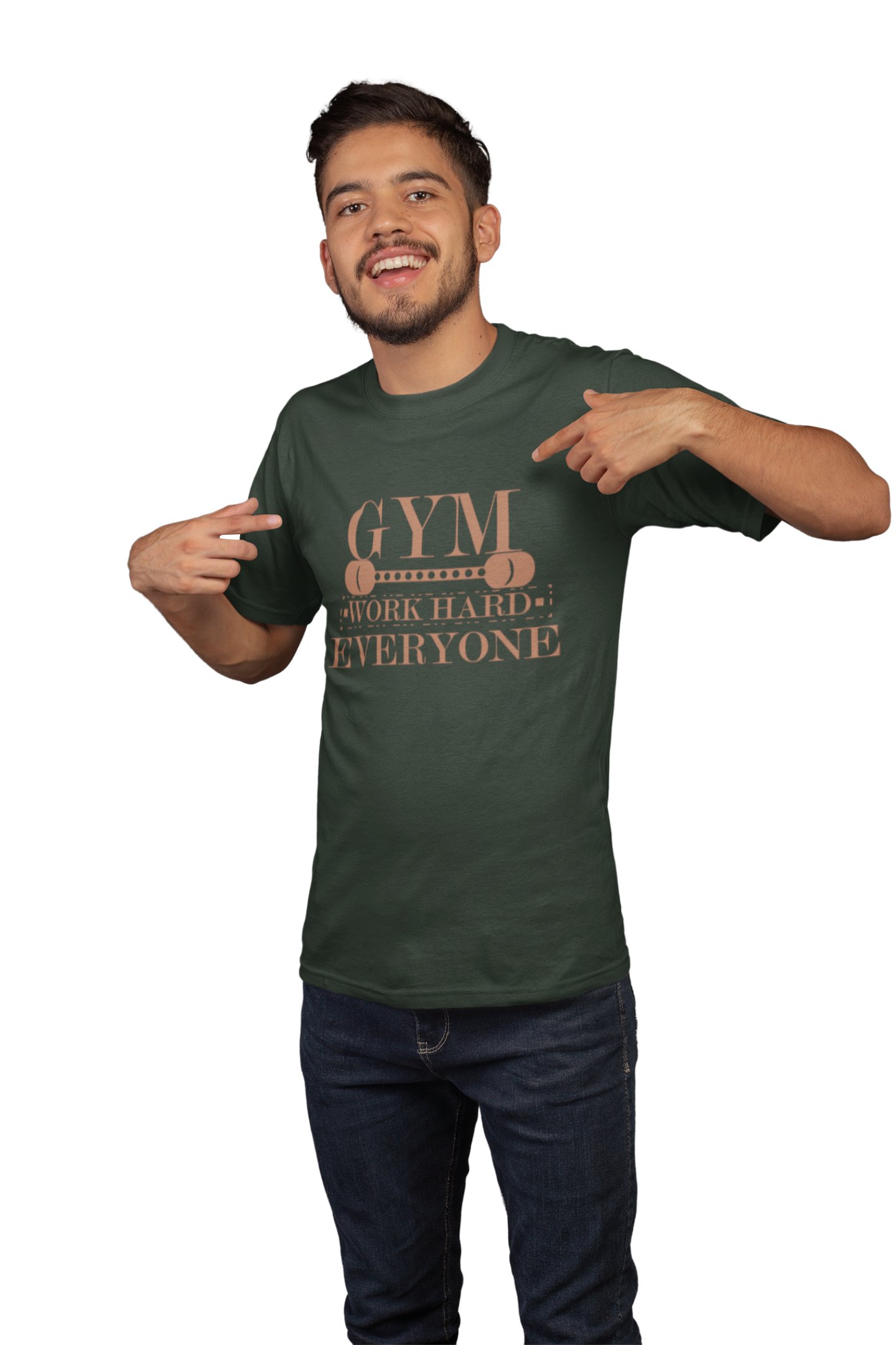 Gym, Work Hard Everyone, (BG Brown), Round Neck Gym Tshirt - Foremost Gifting Material for Your Friends and Close Ones