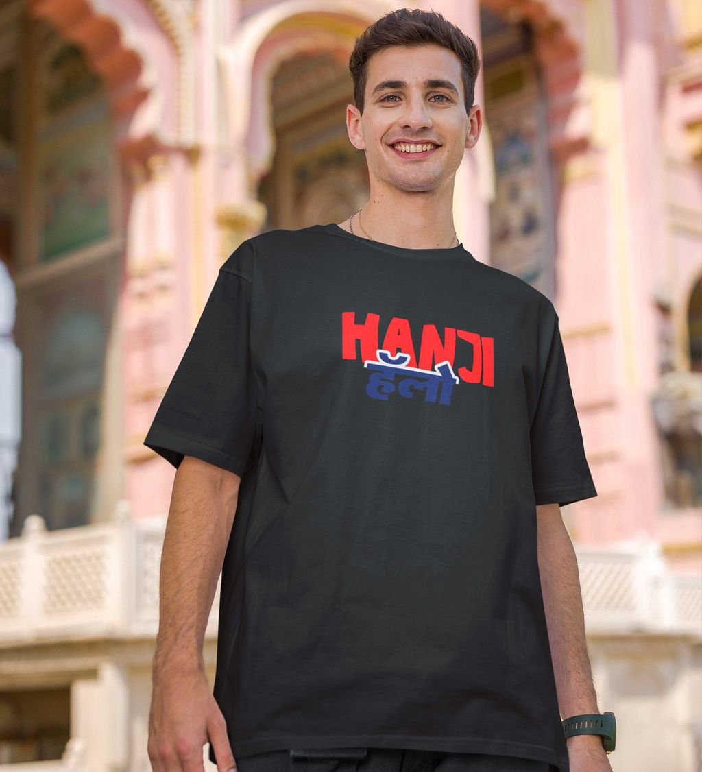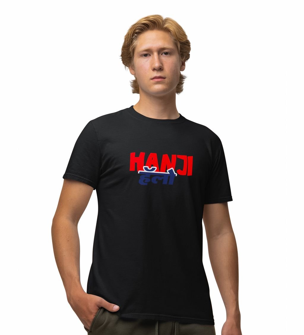 Haanji Hello Black Round Neck Cotton Half Sleeved Womens T Shirt with Printed Graphics