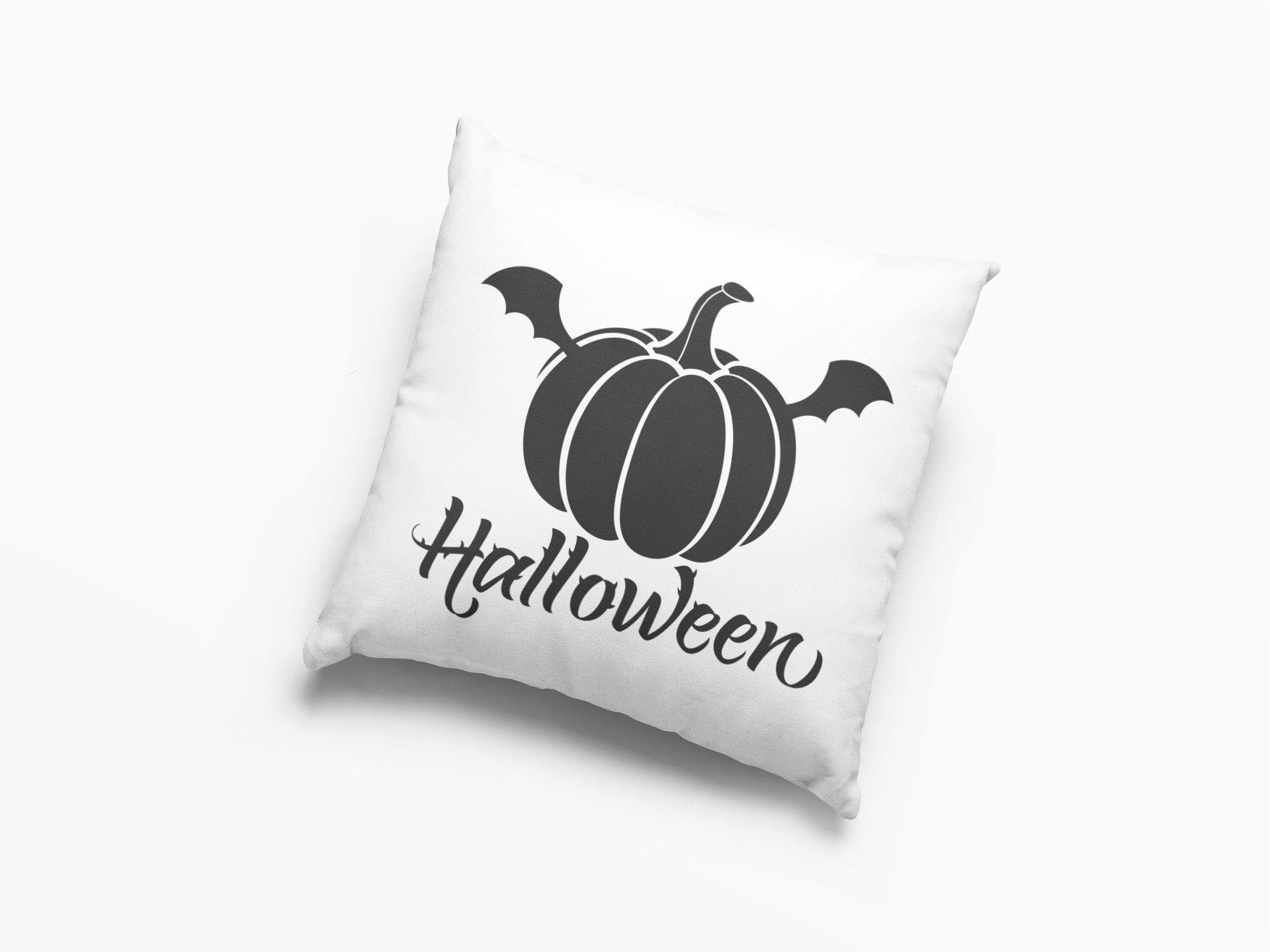 Halloween Black text -Pumpkin With Wings -Halloween Theme Pillow Covers (Pack Of 2)
