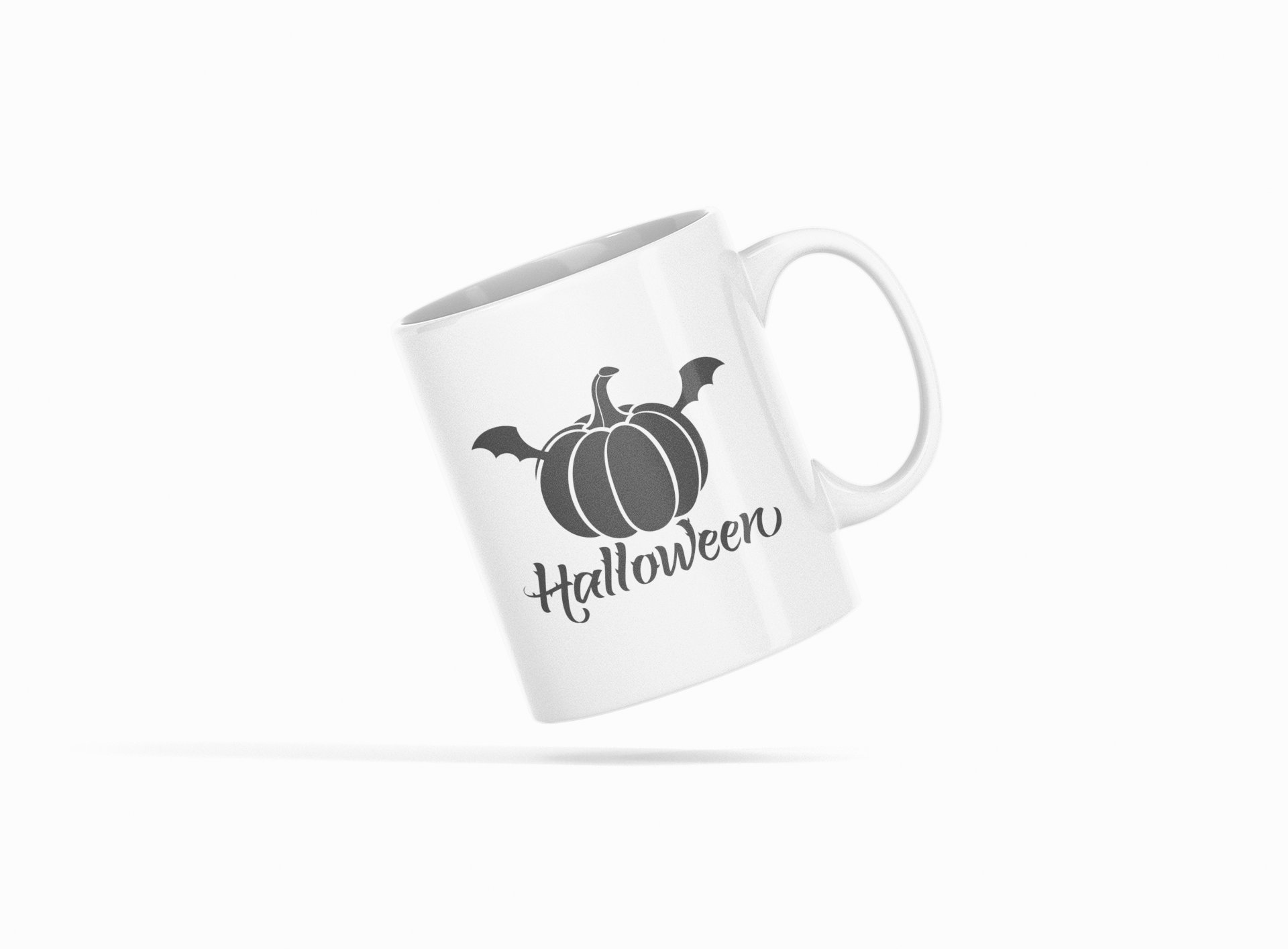 Halloween Black text -Pumpkin With Wings -Halloween Themed Printed Coffee Mugs