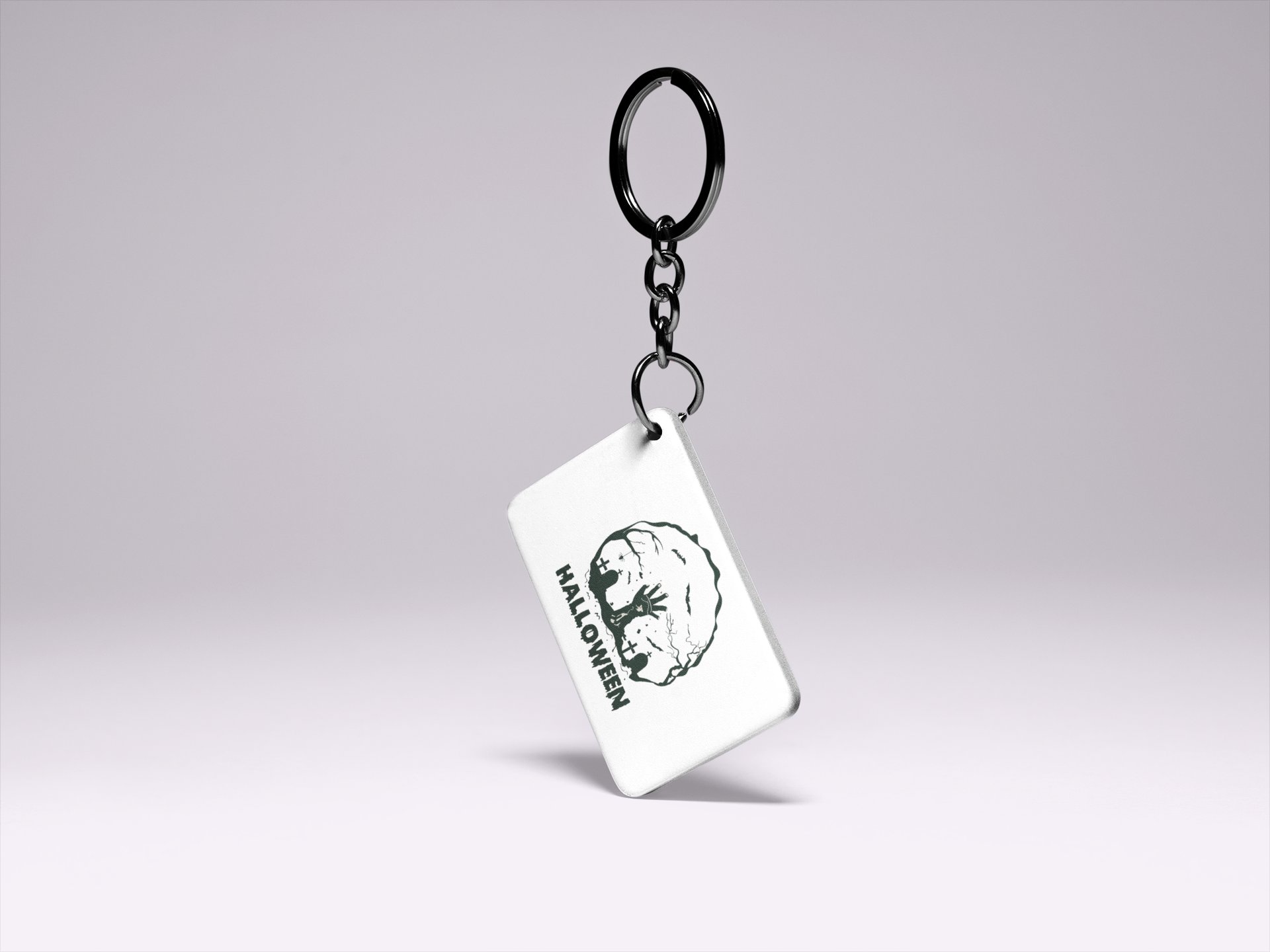 Halloween, graveyard, (BG white) -Printed Acrylic Keychains(Pack Of 2)