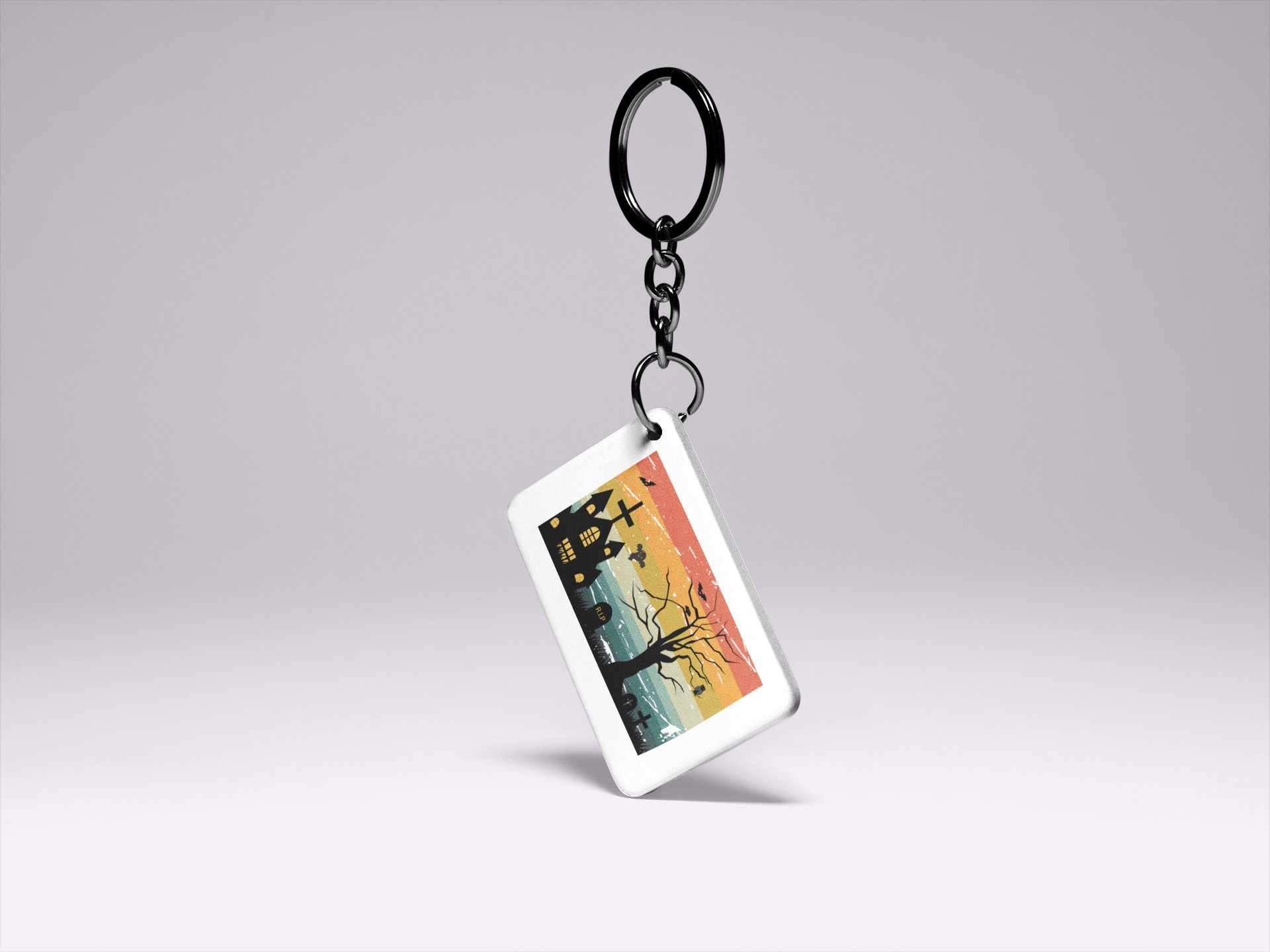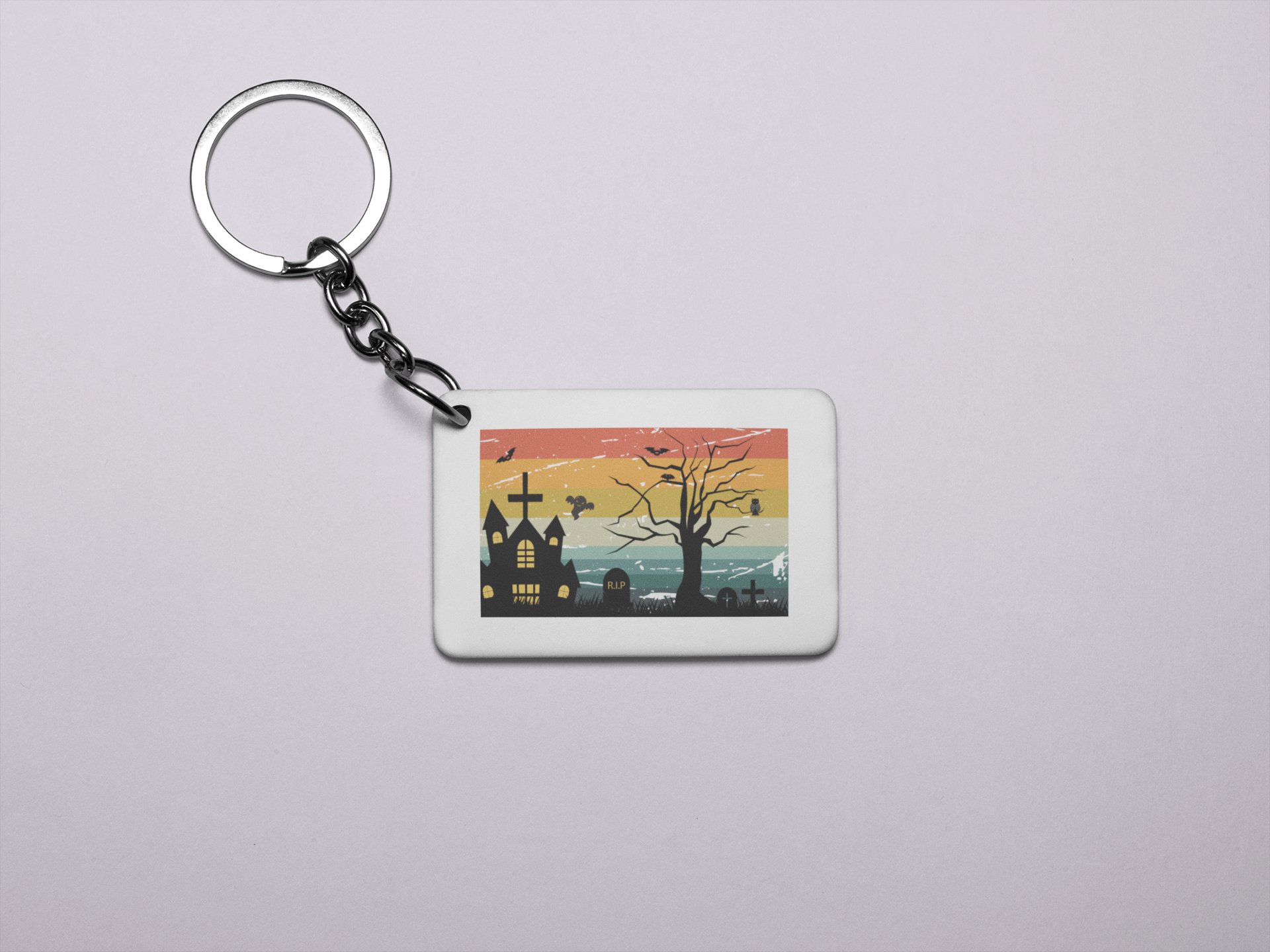 Halloween graveyard - text illustration graphic-Printed Acrylic Keychains(Pack Of 2)