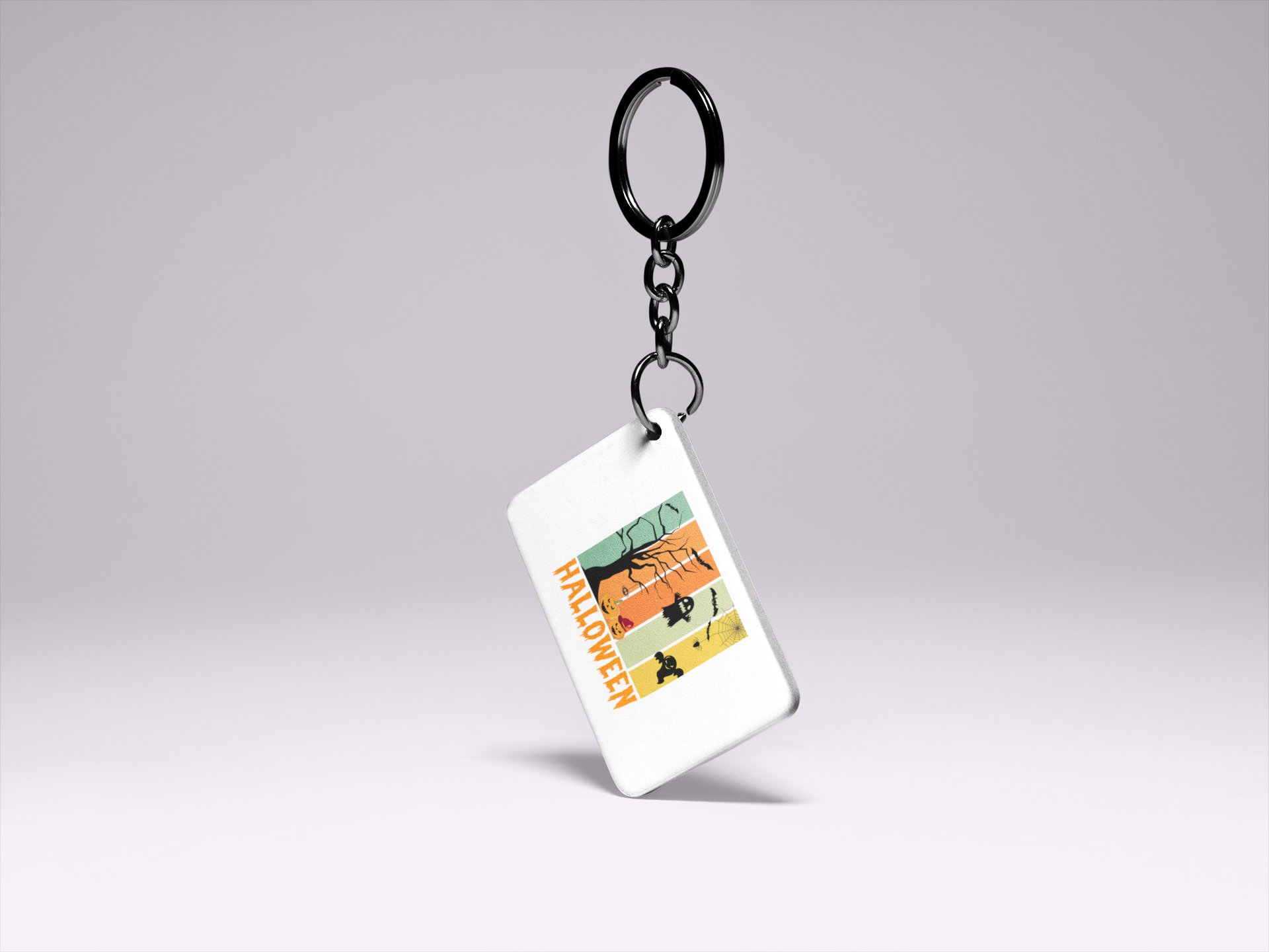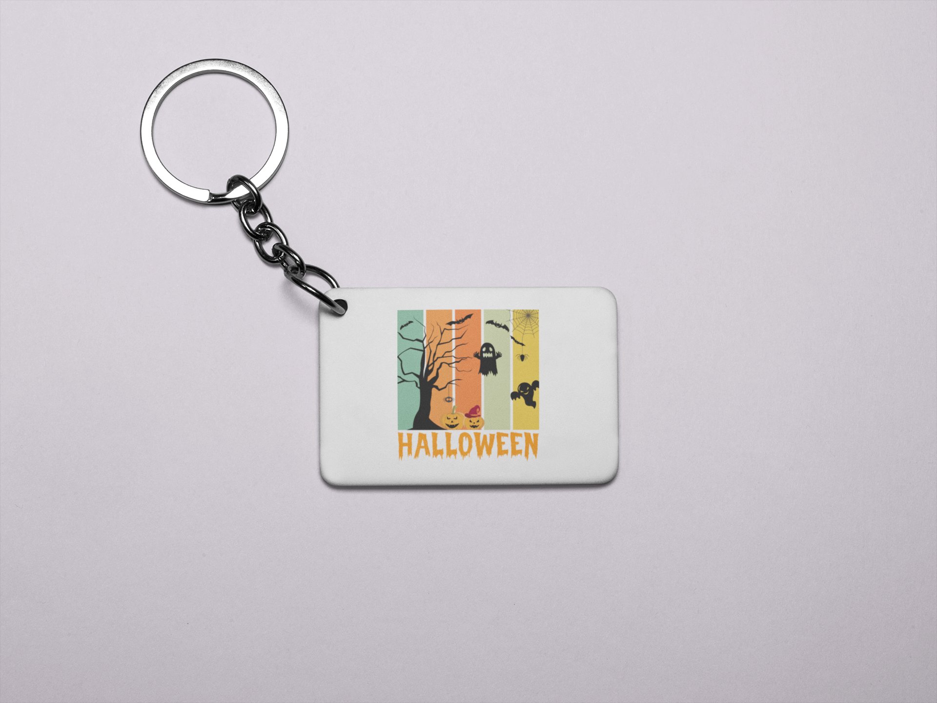 Halloween Orange Text -Pumpkins And Ghosts-Printed Acrylic Keychains(Pack Of 2)