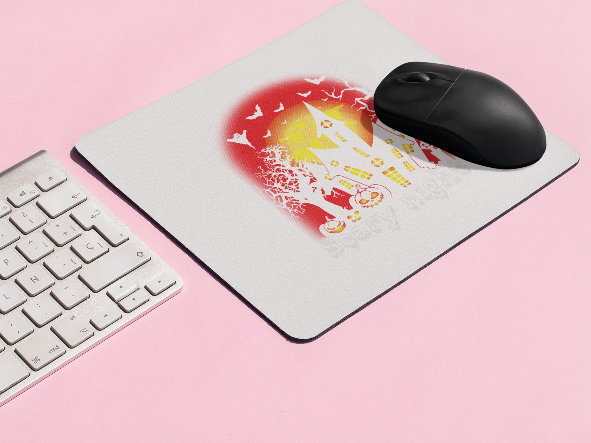 Halloween Scary Illustration -Hunted House-Halloween Theme Mousepads