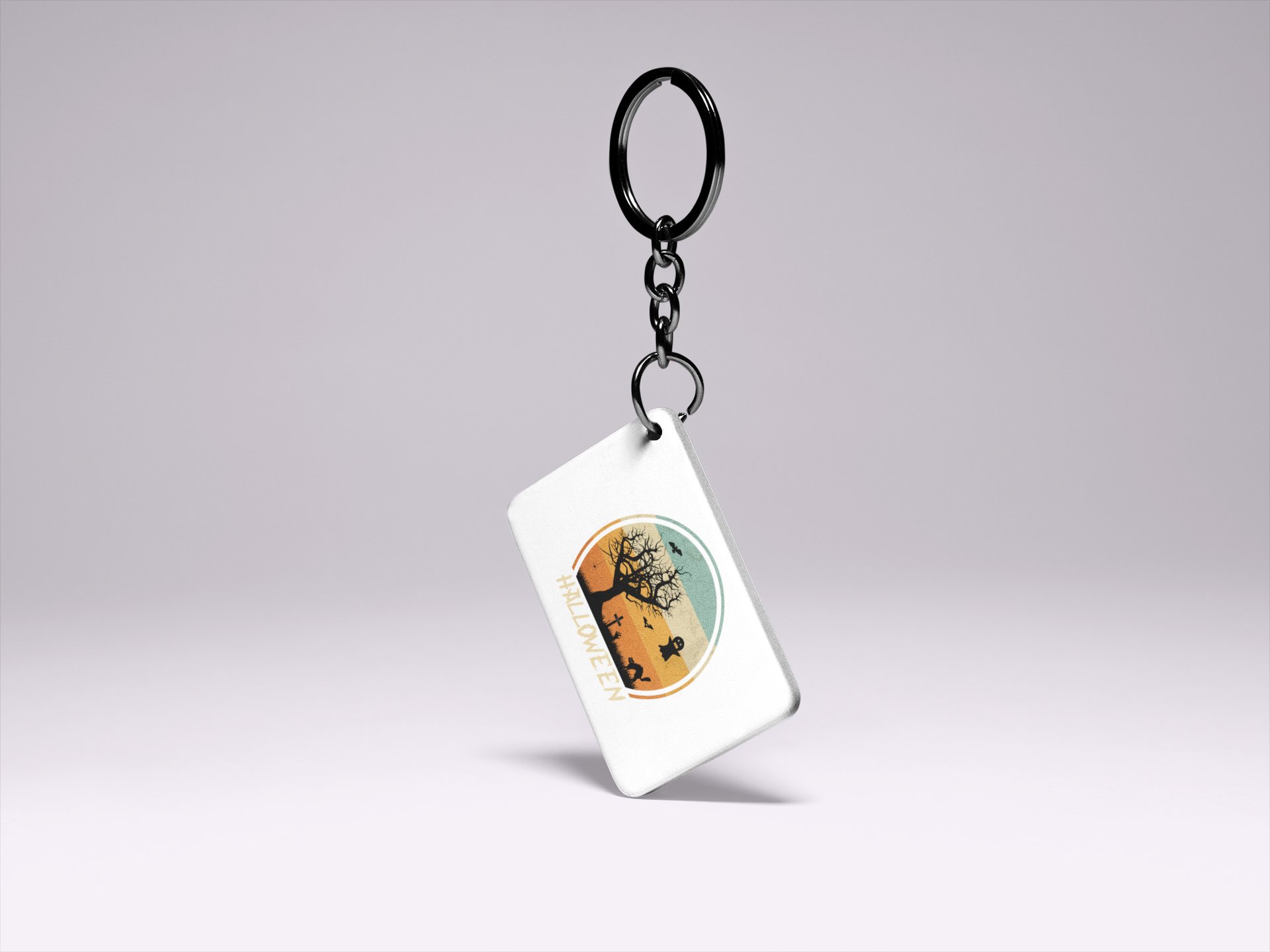 Halloween Semi Circle-Gravyard -Printed Acrylic Keychains(Pack Of 2)