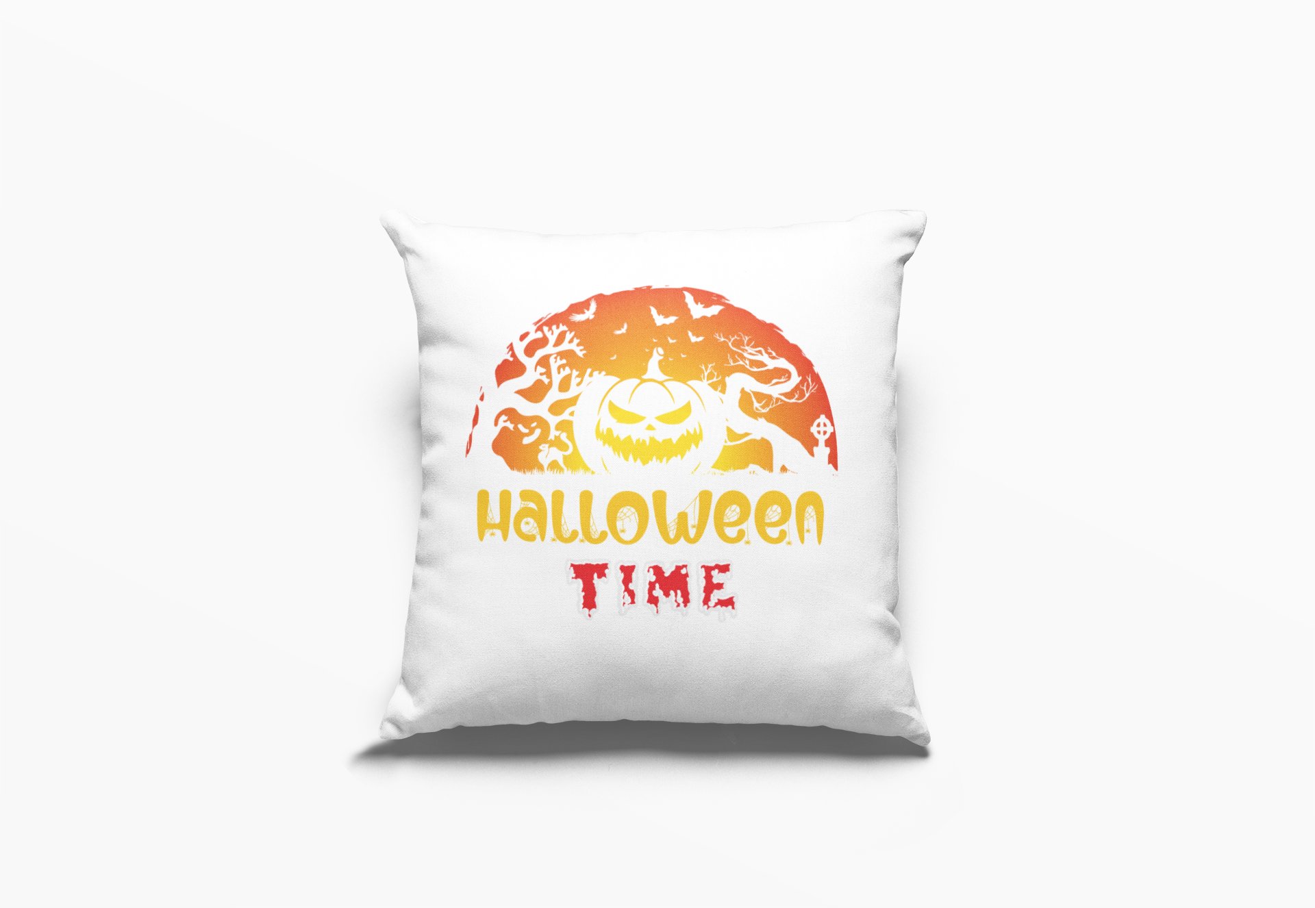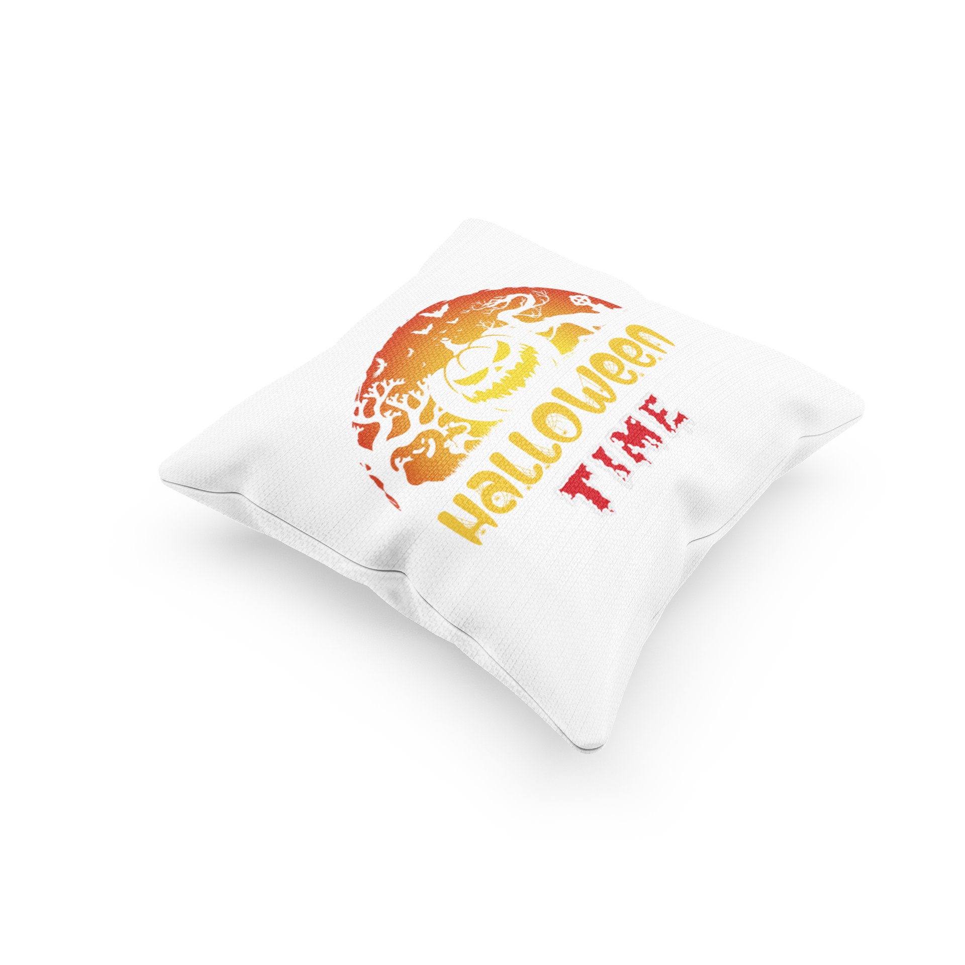 Halloween Time Yellow Red Text With Spider Webs -Halloween Theme Pillow Covers (Pack Of 2)