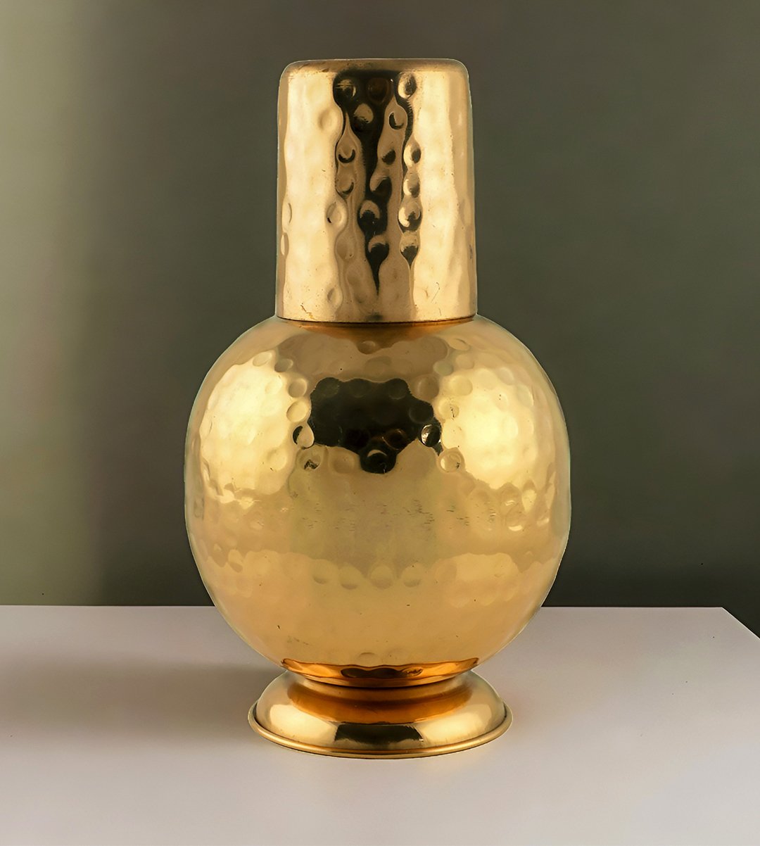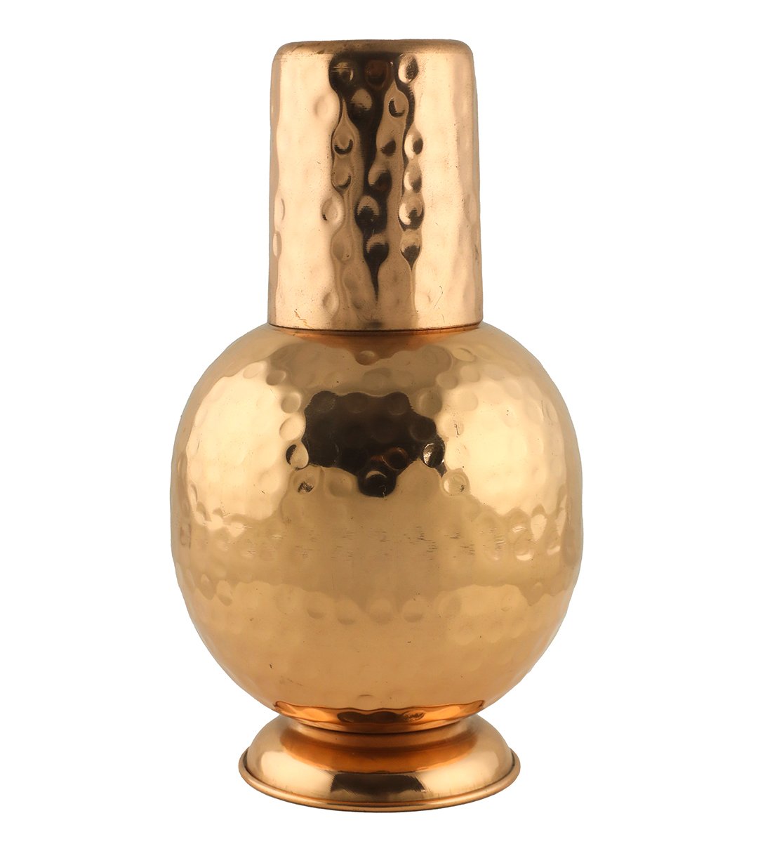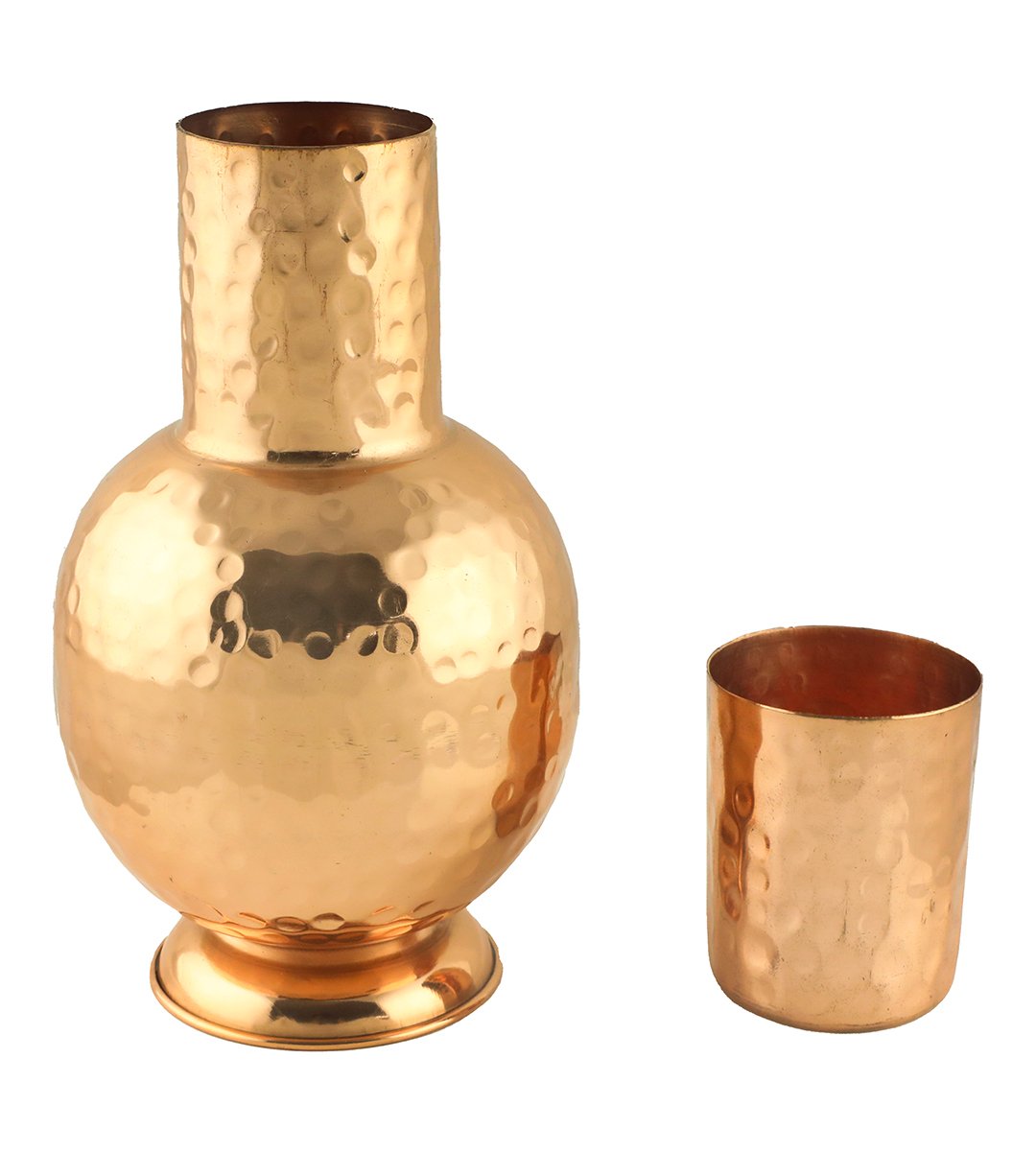 Water stored over night in copper Utensil is essential for hemoglobin synthesis, bone strength and immunity building. Copper helps in maintaining digestive health, healing wounds and relieving pains. Copper is an Antioxidant and anti-carcinogenic that prevents cell damage and slows aging. Copper is primary element to produce melanin (pigmentation of eyes, hair and skin) in human body. ARTISAN CRAFTED Handmade metal ware is made by skilled craftsmen in India.