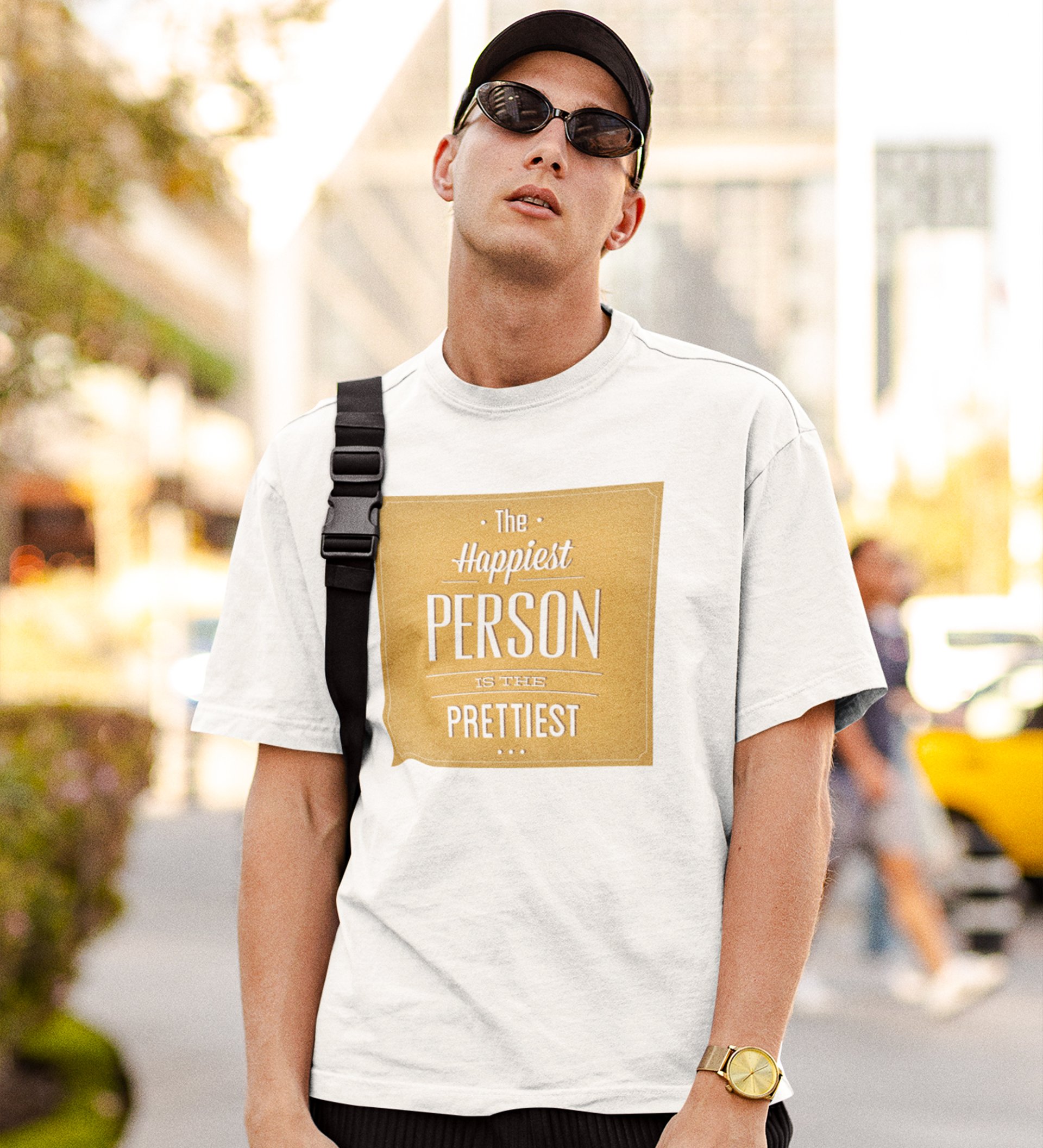 The Prettiest Person White Round Neck Cotton Half Sleeved Men's T-Shirt with Printed Graphics