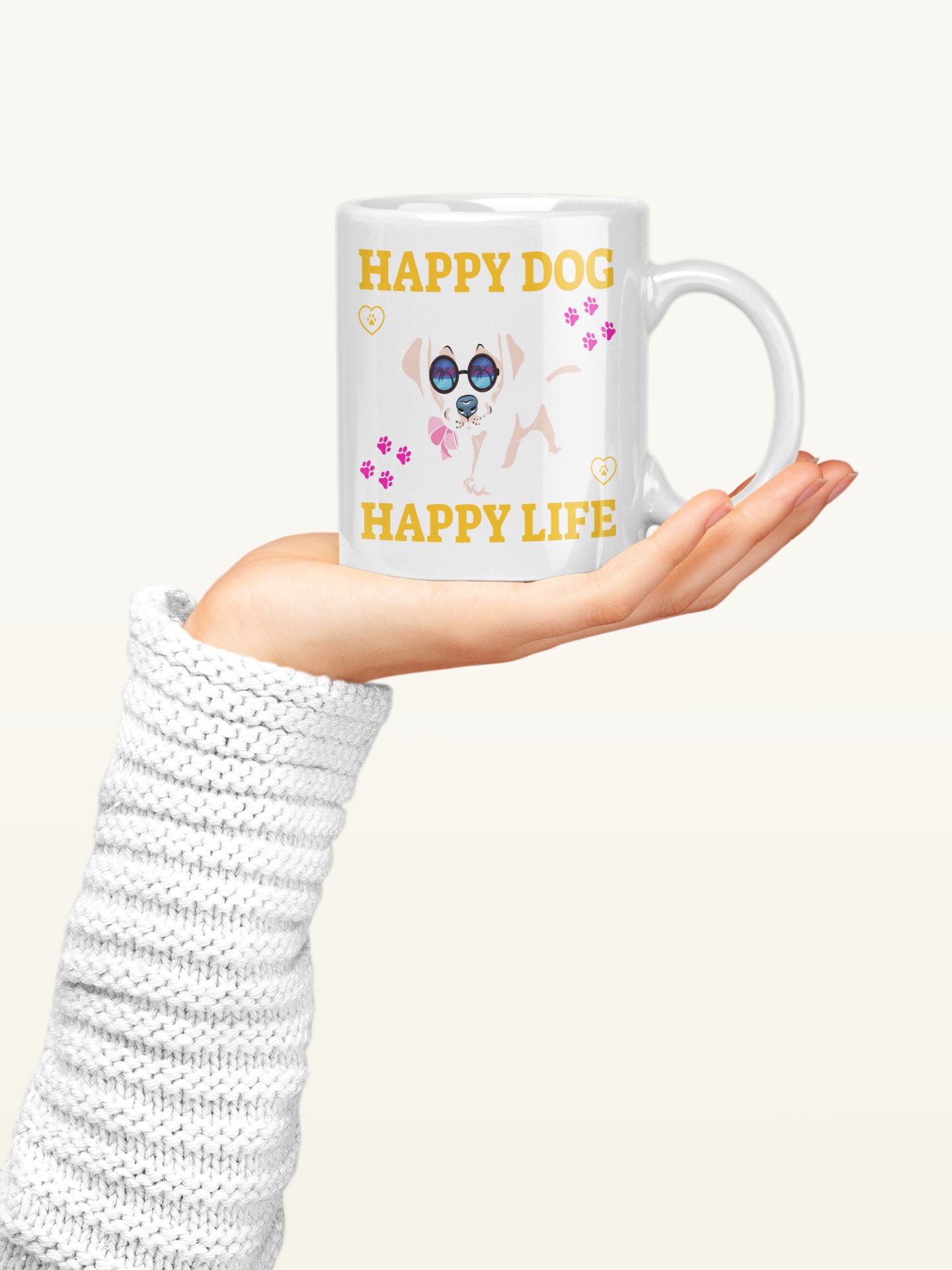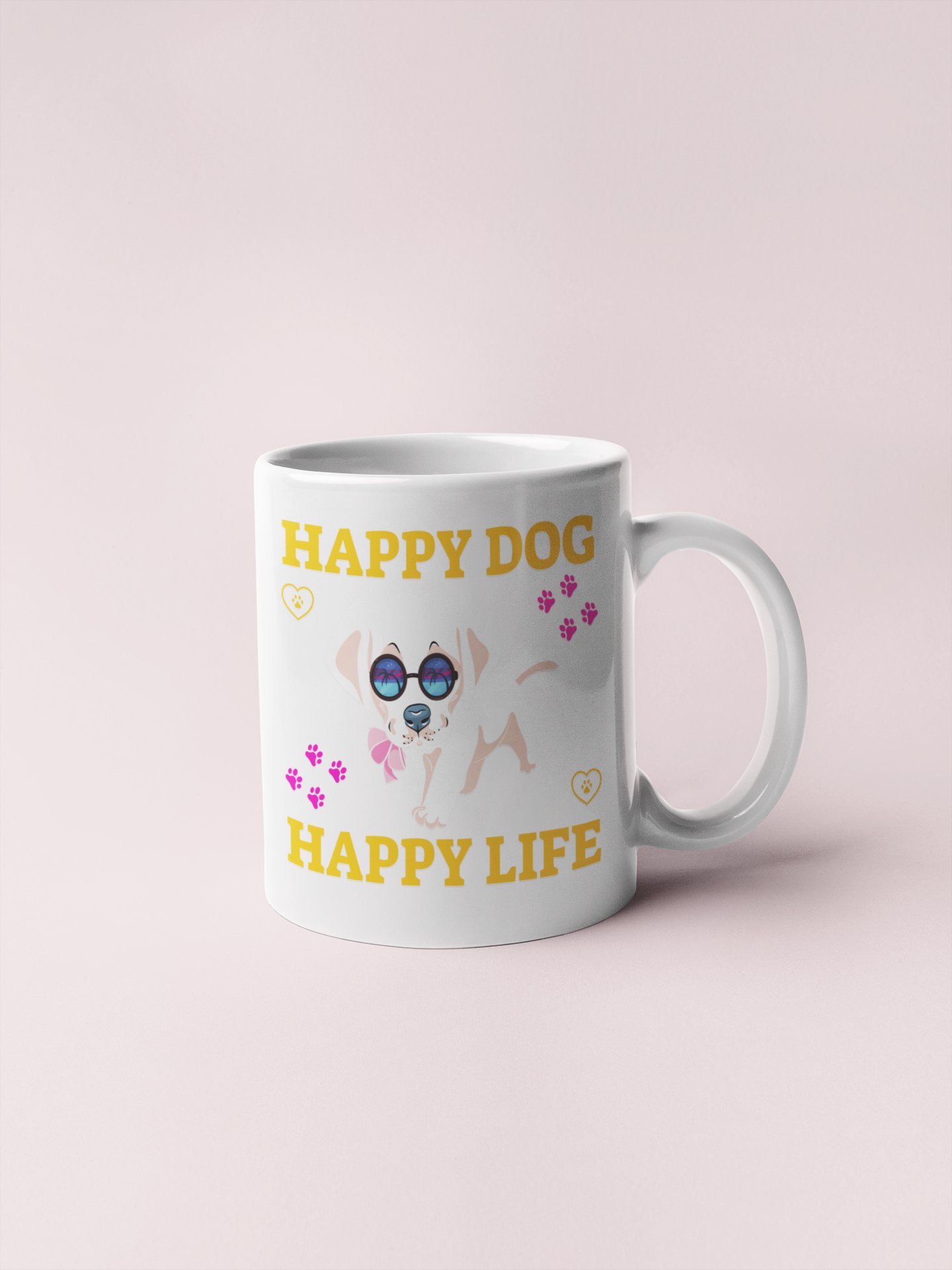 Happy dog happy life - pets themed printed ceramic white coffee and tea mugs/ cups for pets lover people