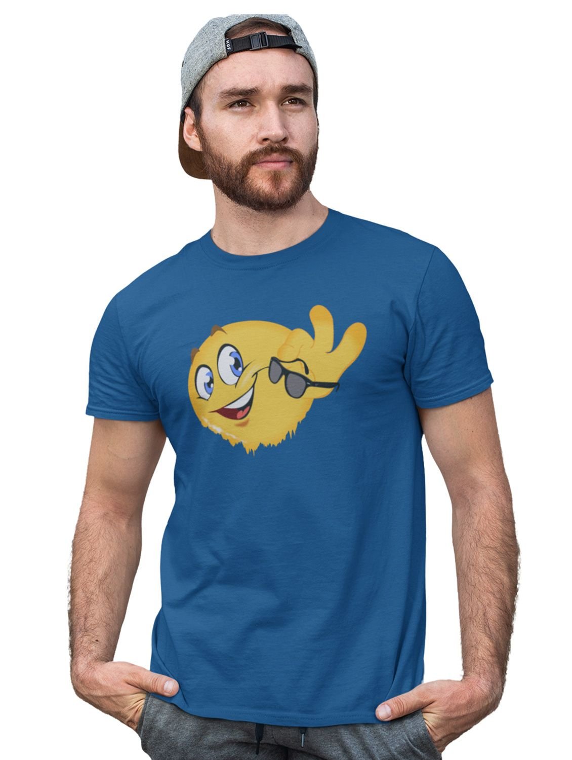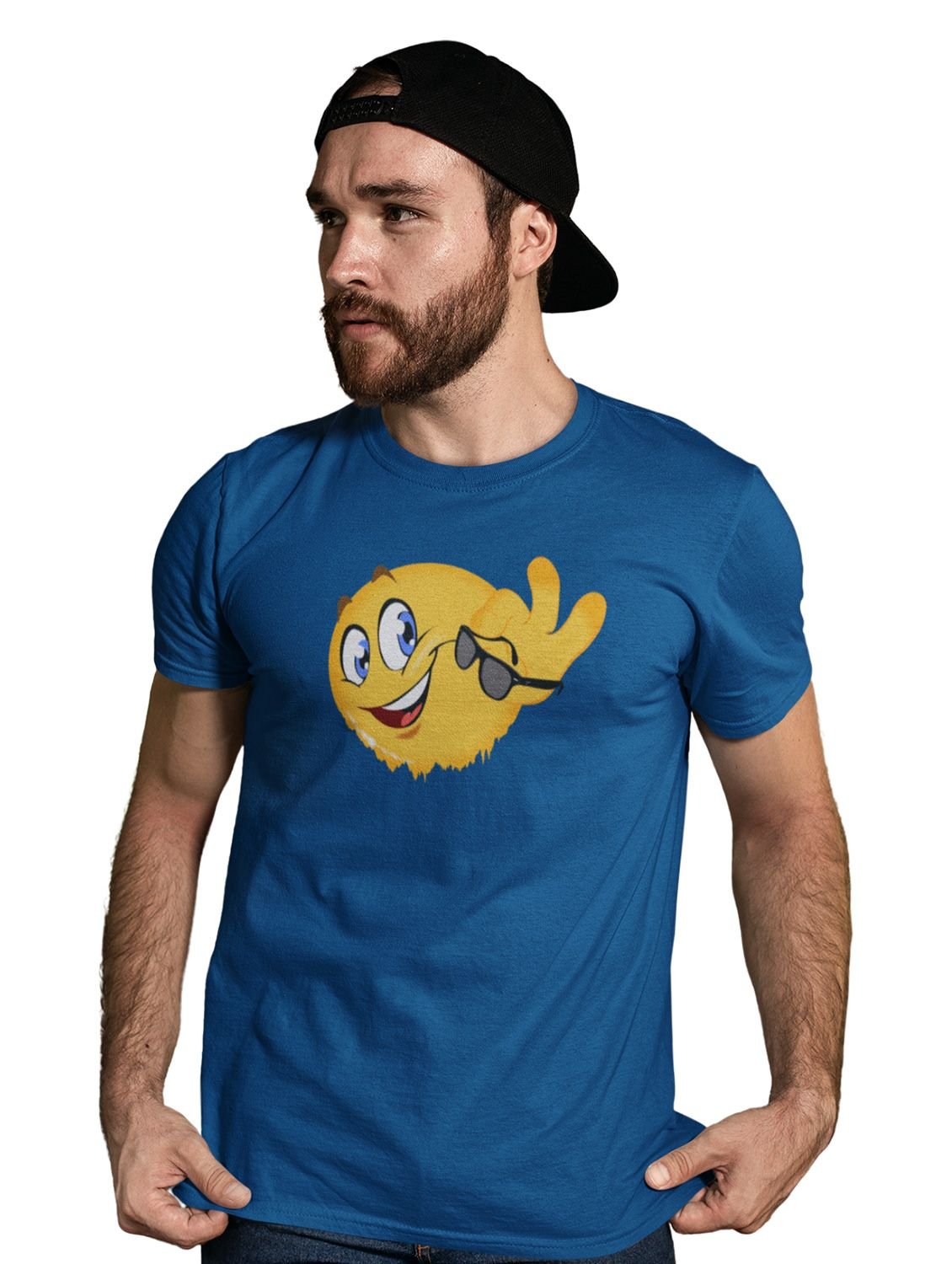 Happy Emoji removing glasses T-shirt (Blue) - Clothes for Emoji Lovers - Suitable for Fun Events - Foremost Gifting Material for Your Friends and Close Ones