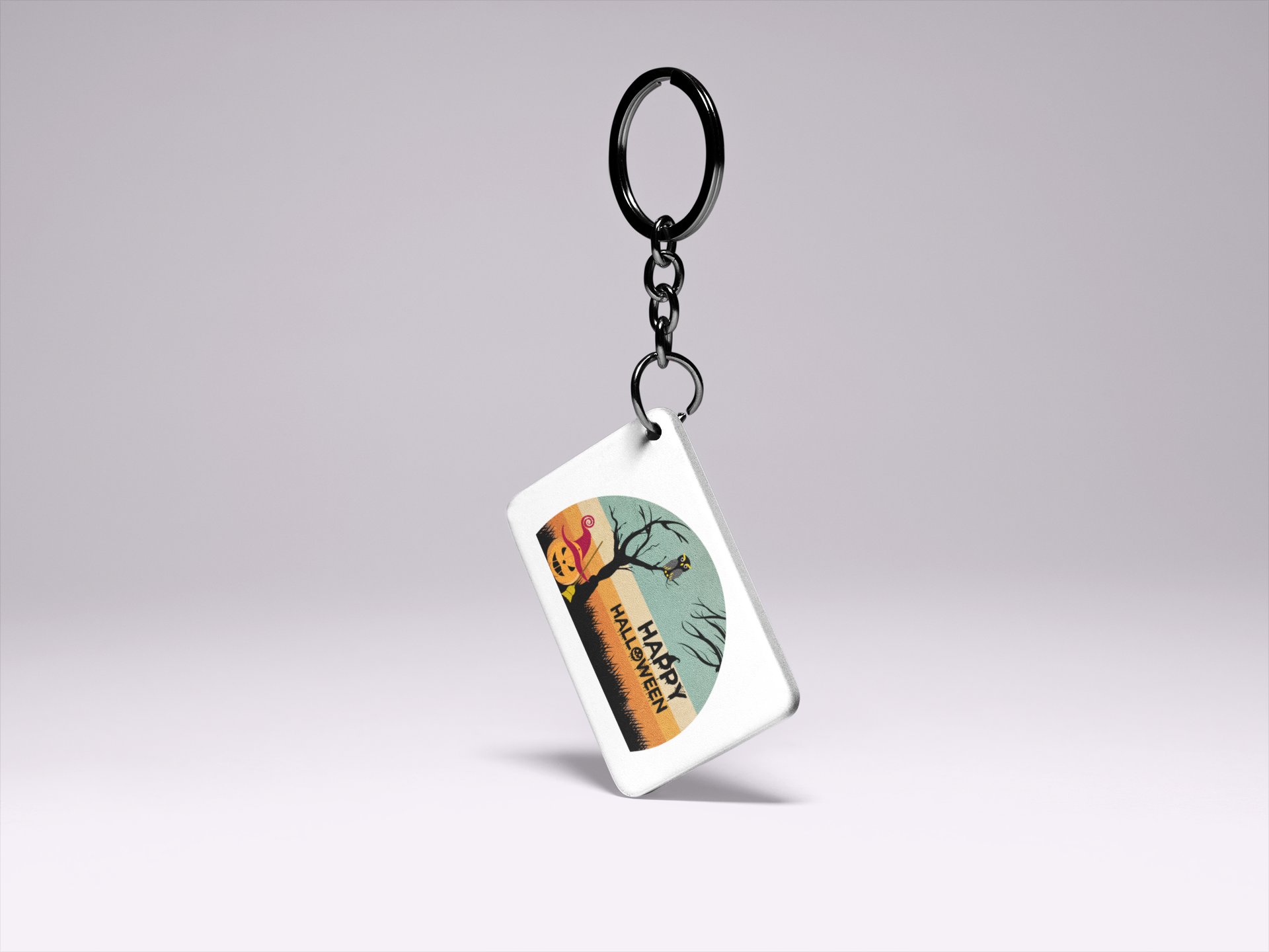 Happy Halloween Black text -Pumpkin And Trees -Printed Acrylic Keychains(Pack Of 2)
