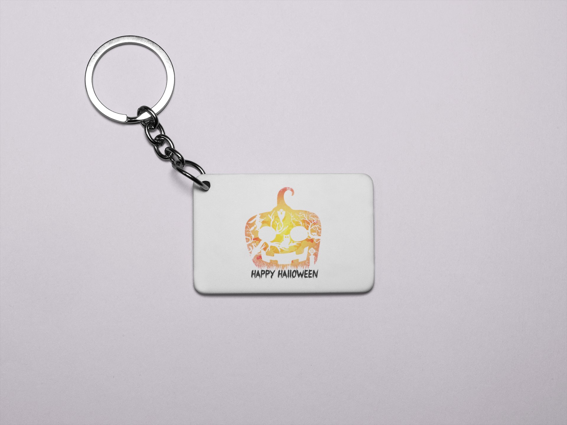 Happy Halloween- Pumpkin With Evil Shadow-Printed Acrylic Keychains(Pack Of 2)