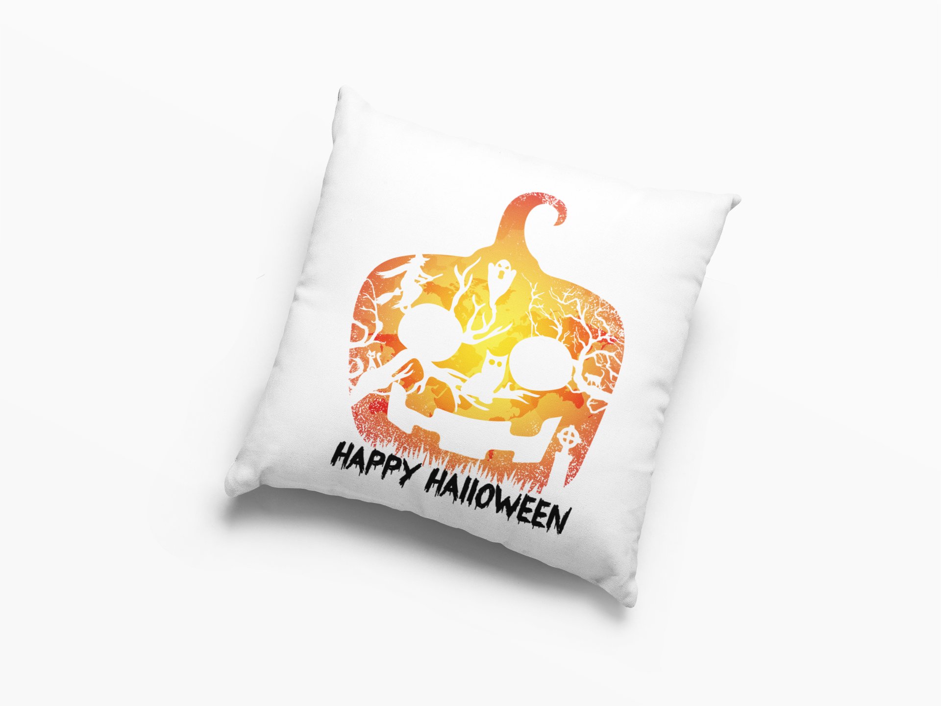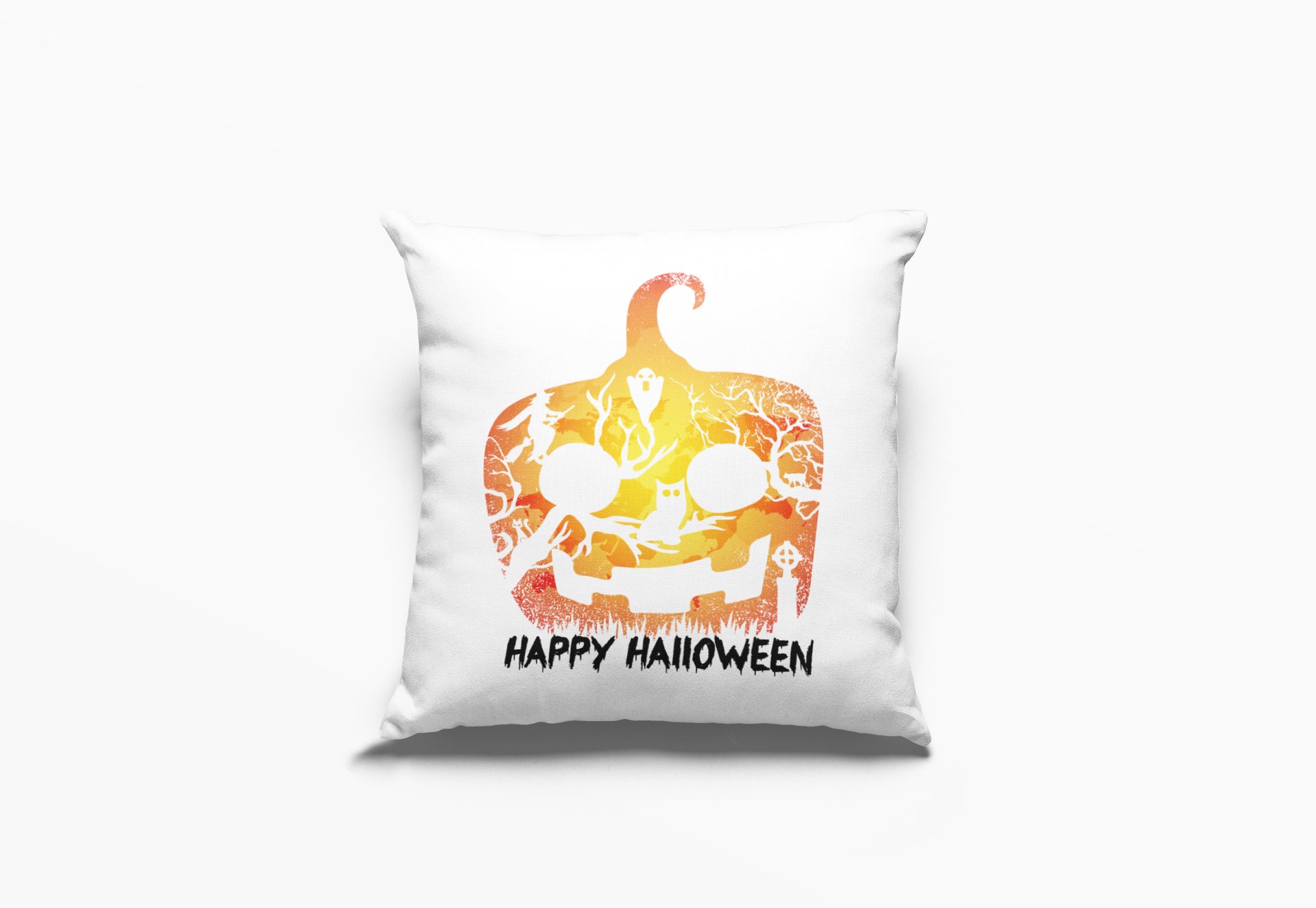 Happy Halloween- Pumpkin With Evil Shadow-Halloween Theme Pillow Covers (Pack Of 2)