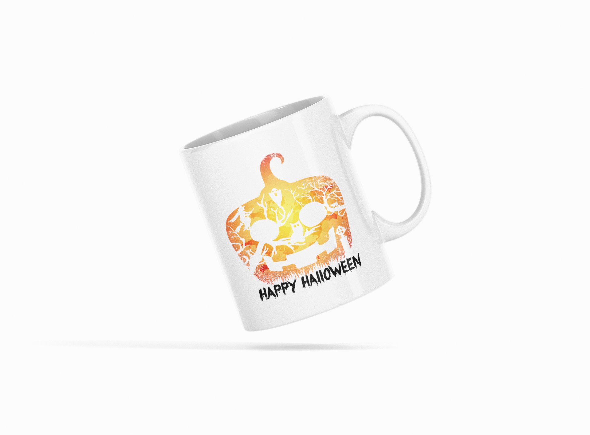 Happy Halloween- Pumpkin With Evil Shadow-Halloween Themed Printed Coffee Mugs