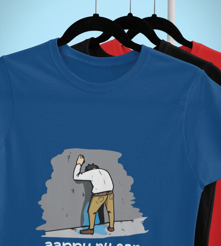 Happy New Year Oyee! Blue New Year Printed T-shirt For Mens
