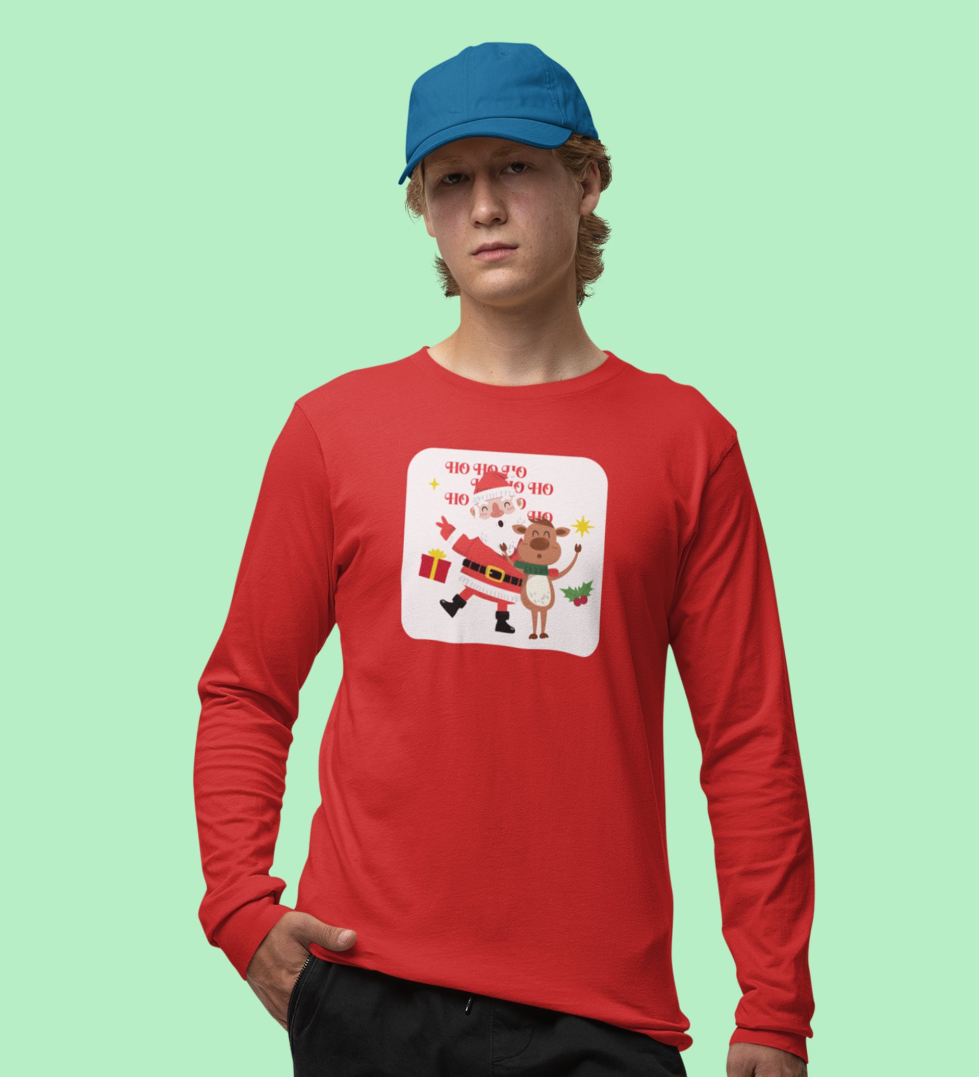Happy Santa: Best DesignerFull Sleeve T-shirt Red Best Gift For Kids