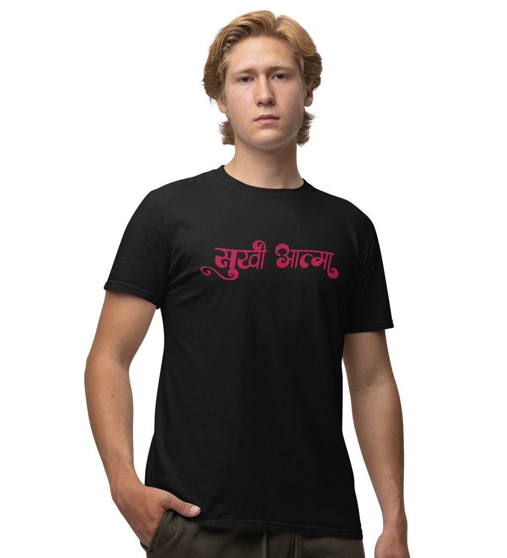 Happy Soul Black Round Neck Cotton Half Sleeved Men T Shirt with Printed Graphics