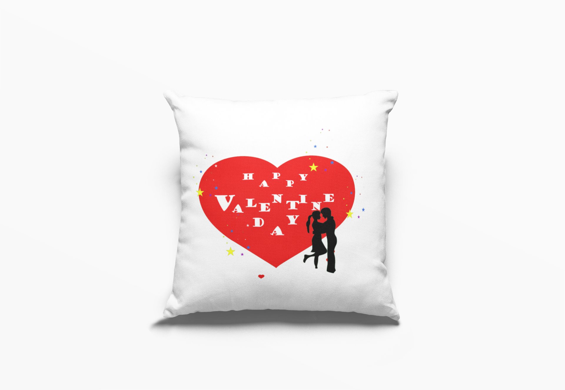 Happy Vlaentine's Day text in White -Printed Pillow Covers For (Pack Of Two)
