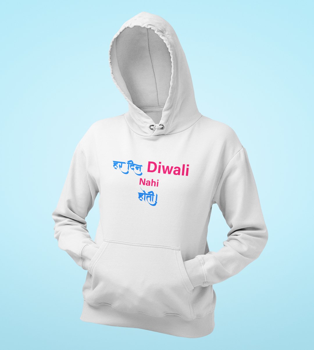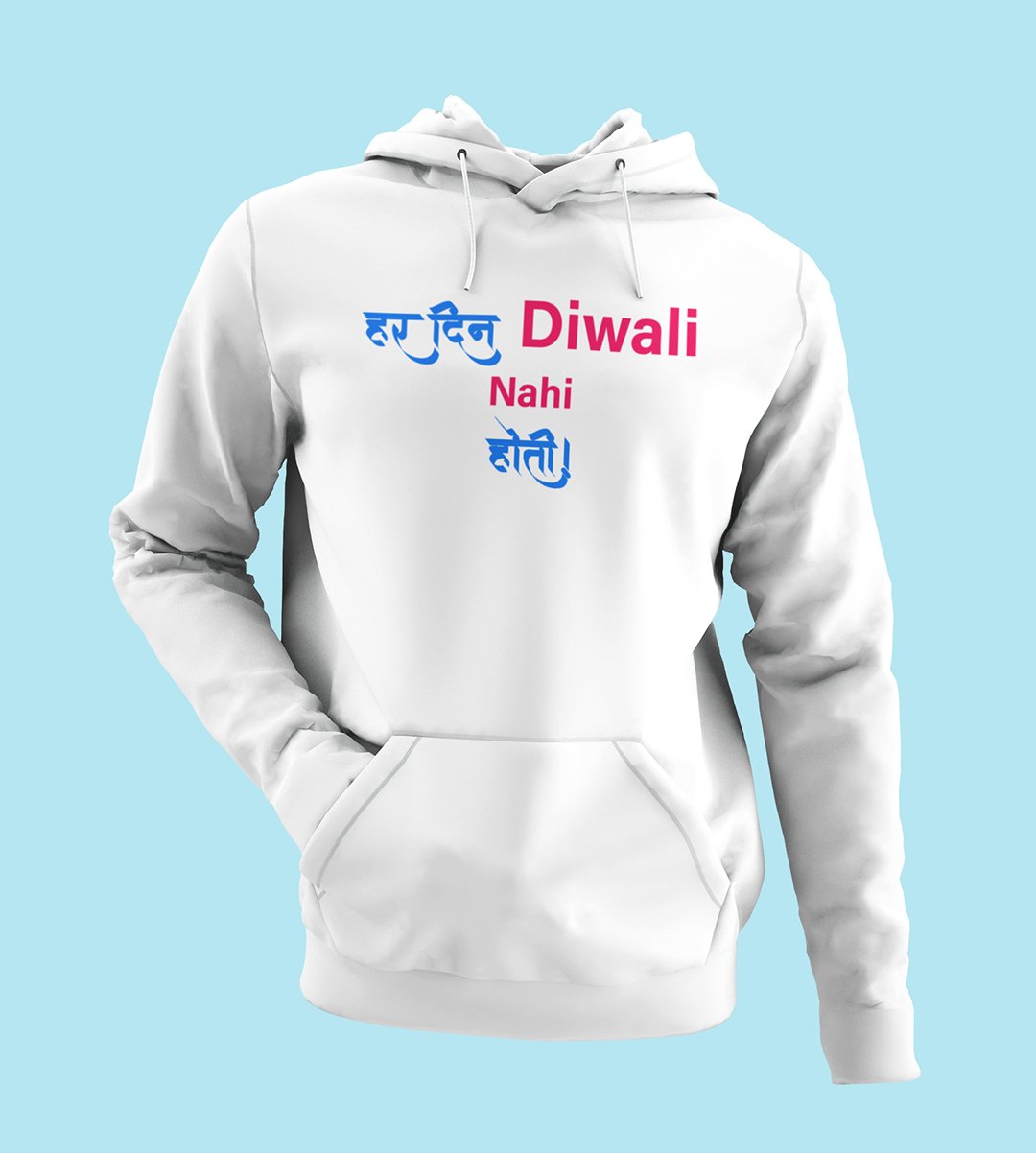 Har din diwali nahi hoti printed diwali themed White Hoodie specially for diwali festival