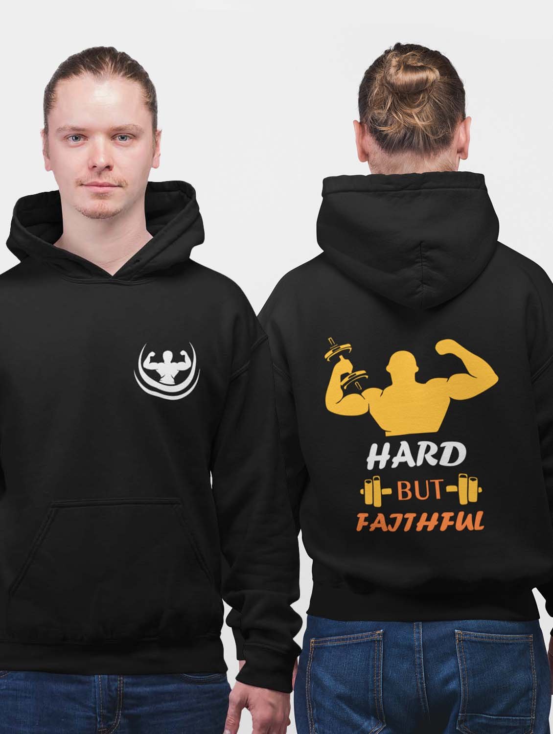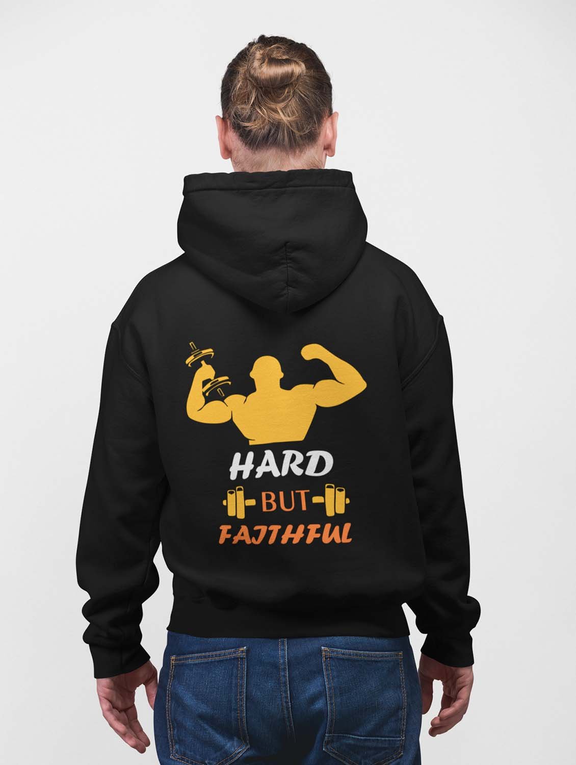 Foremost Hard But Faithful Text printed artswear black hoodies for winter casual wear specially for Men