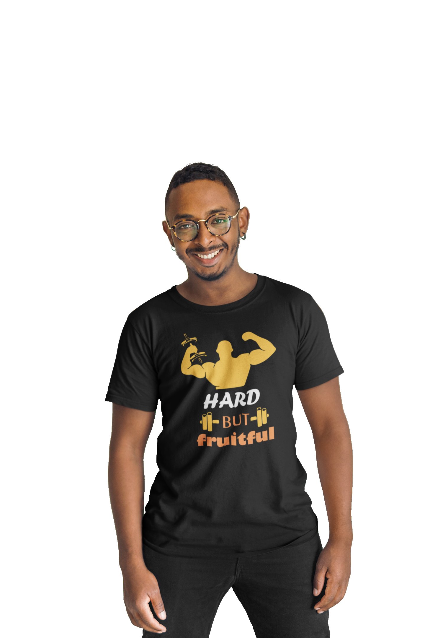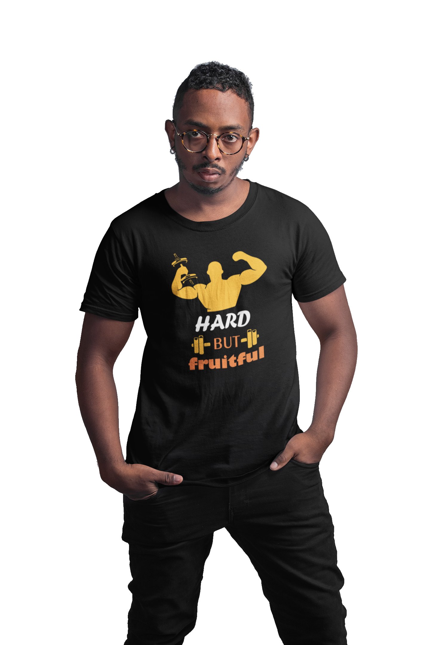 Hard But Fruitful, (BG White, Yellow, and Orange), Round Neck Gym Tshirt (White Tshirt) - Clothes for Gym Lovers - Suitable for Gym Going Person - Foremost Gifting Material for Your Friends and Close Ones