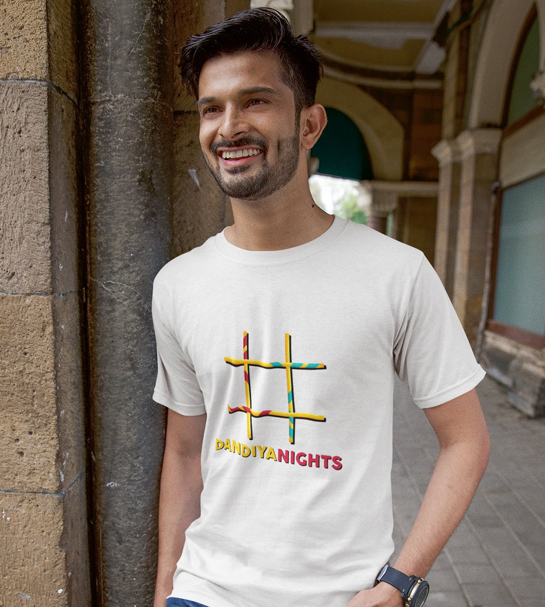 Hashtag printed unisex adults round neck cotton half-sleeve blue tshirt specially for Navratri festival/ Durga puja