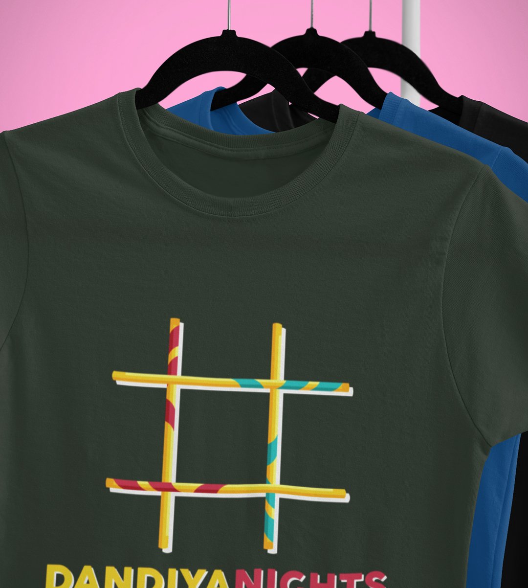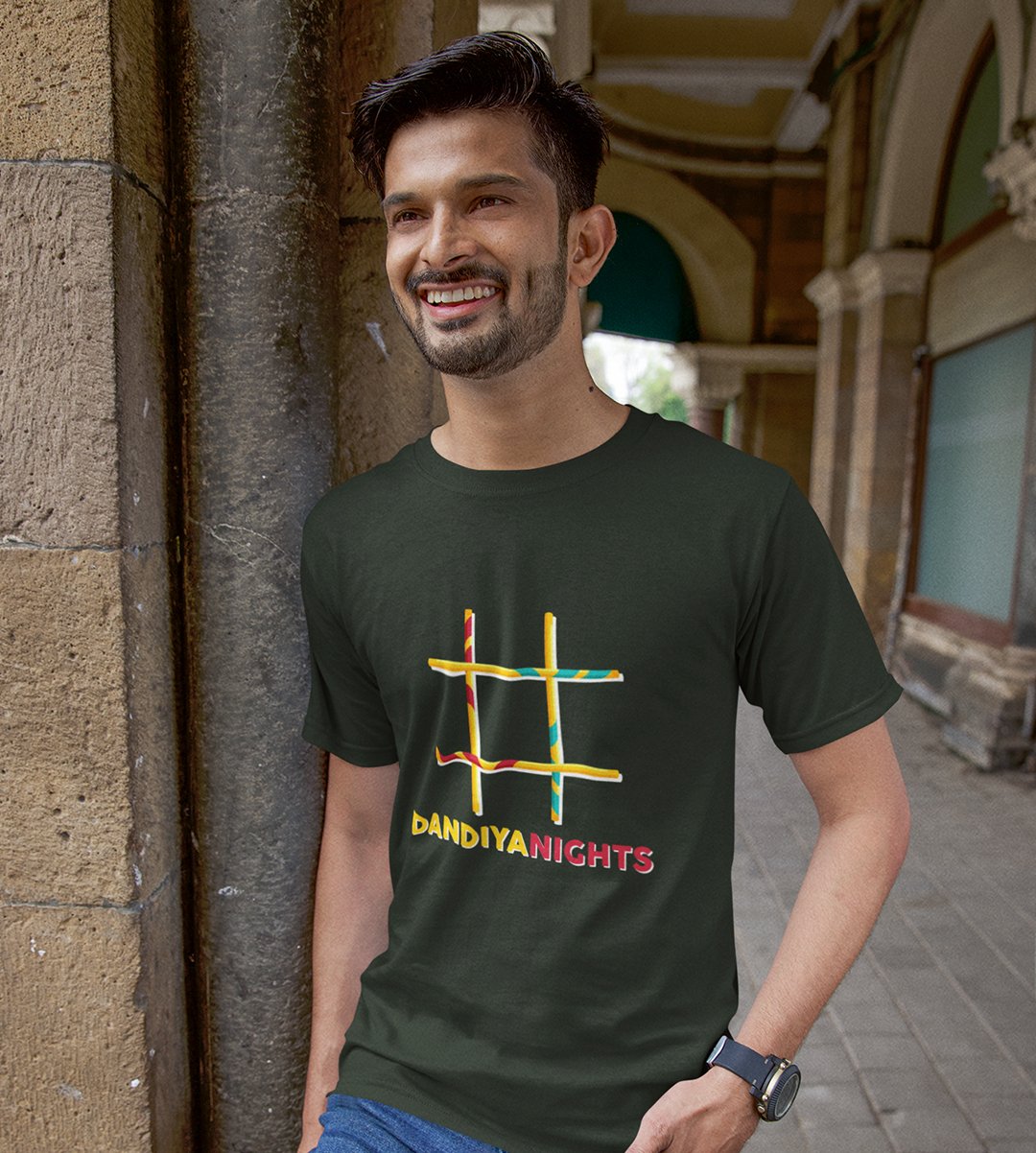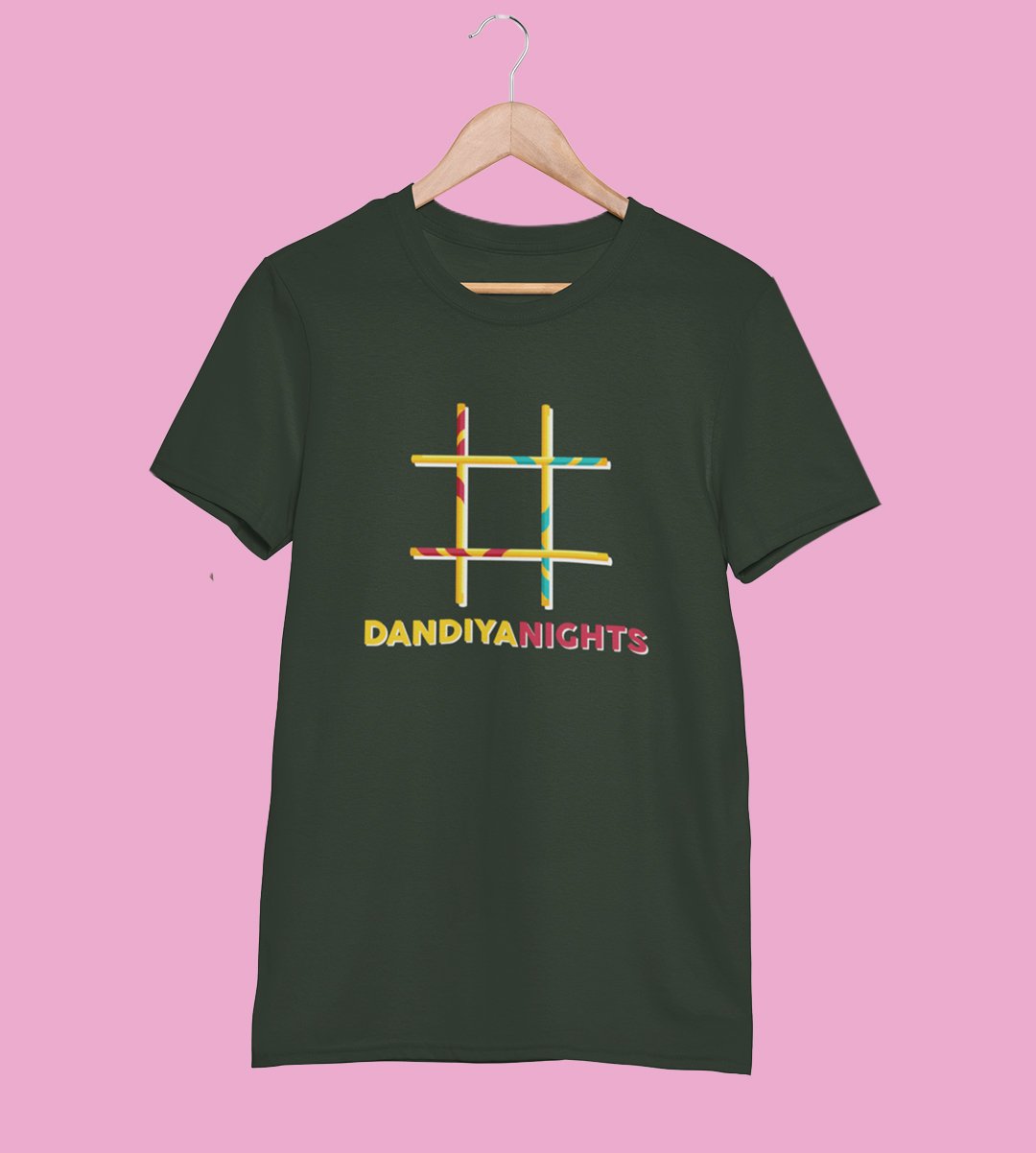 Hashtag printed unisex adults round neck cotton half-sleeve green tshirt specially for Navratri festival/ Durga puja