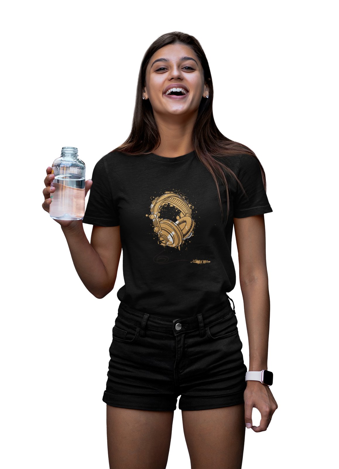 Headphone - musted Black - Women's - printed T-shirt - comfortable round neck Cotton
