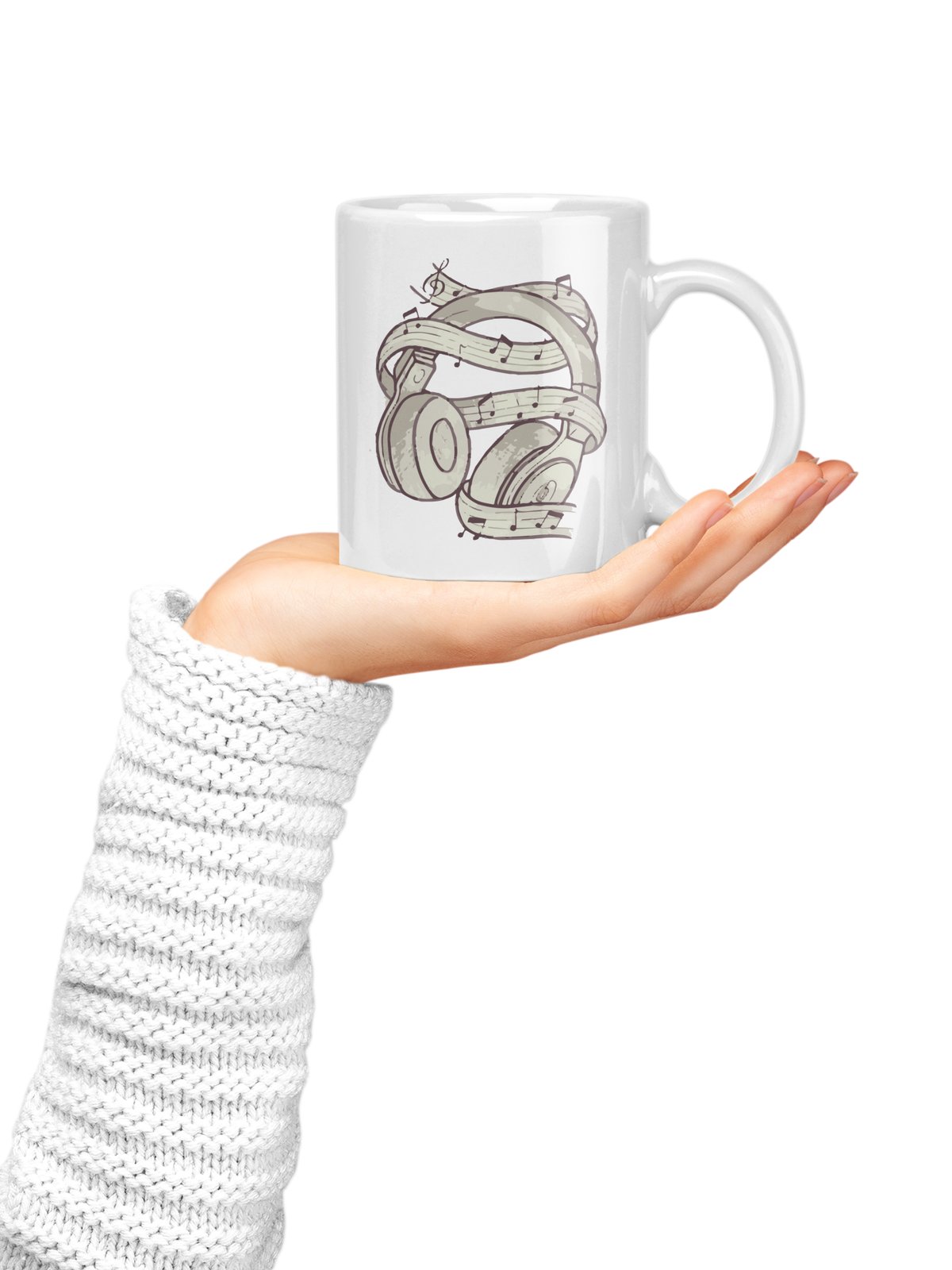 Headphones & music Notes- music themed printed ceramic white coffee and tea mugs/ cups for music lovers