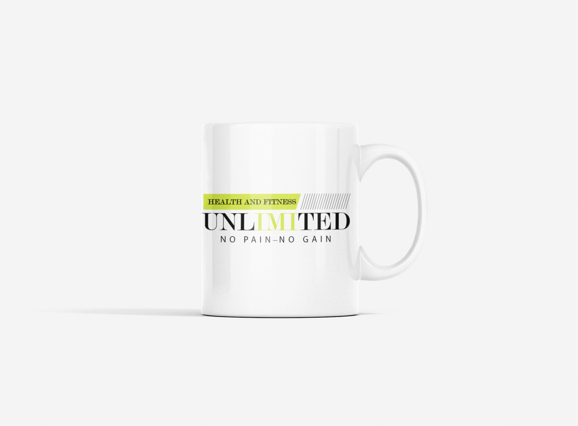 Health and Fitness, Unlimited, No Pain, No Gain, (BG Green and Black) - gym themed printed ceramic white coffee and tea mugs/ cups for gym lovers