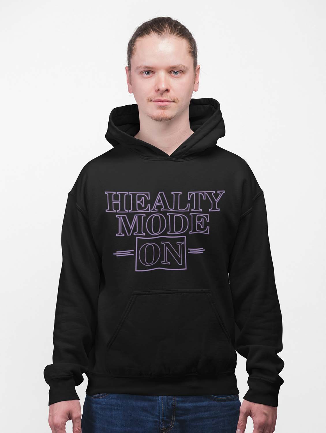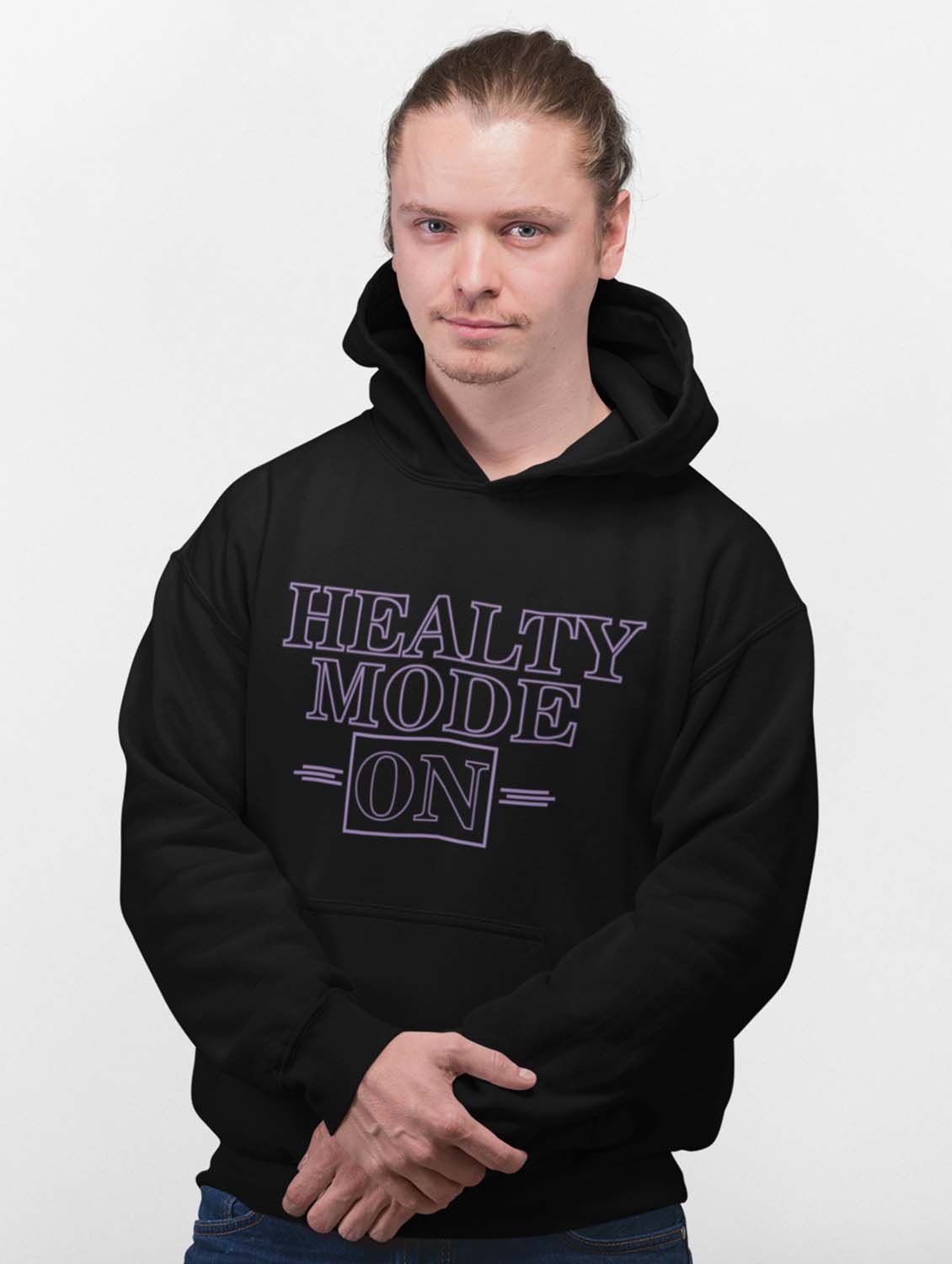 Healthy Mode On (BG Violet) printed black hoodies for winter casual wear specially for Men