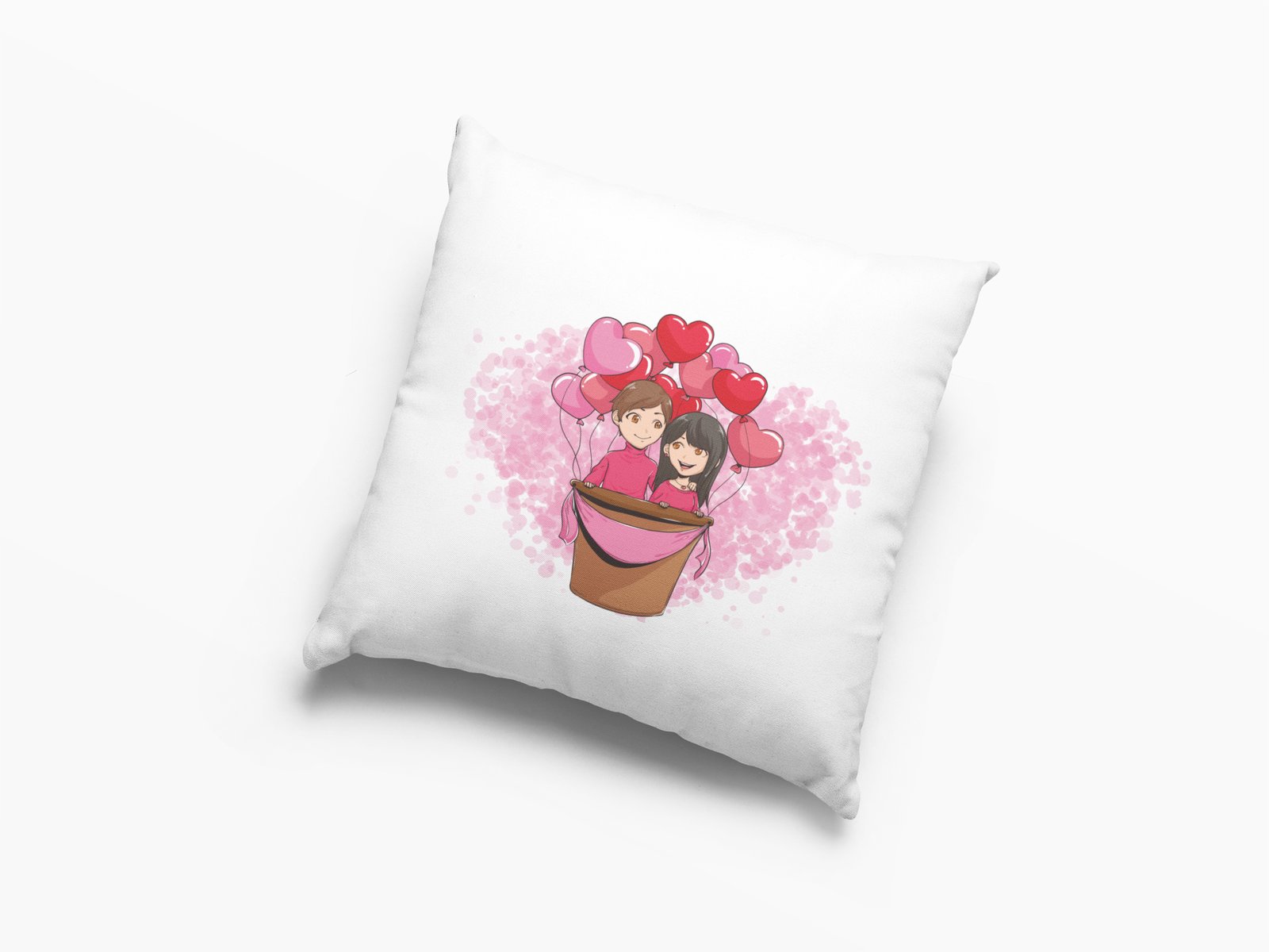 Heart Hot Balloon Couple-Printed Pillow Covers For (Pack Of Two)