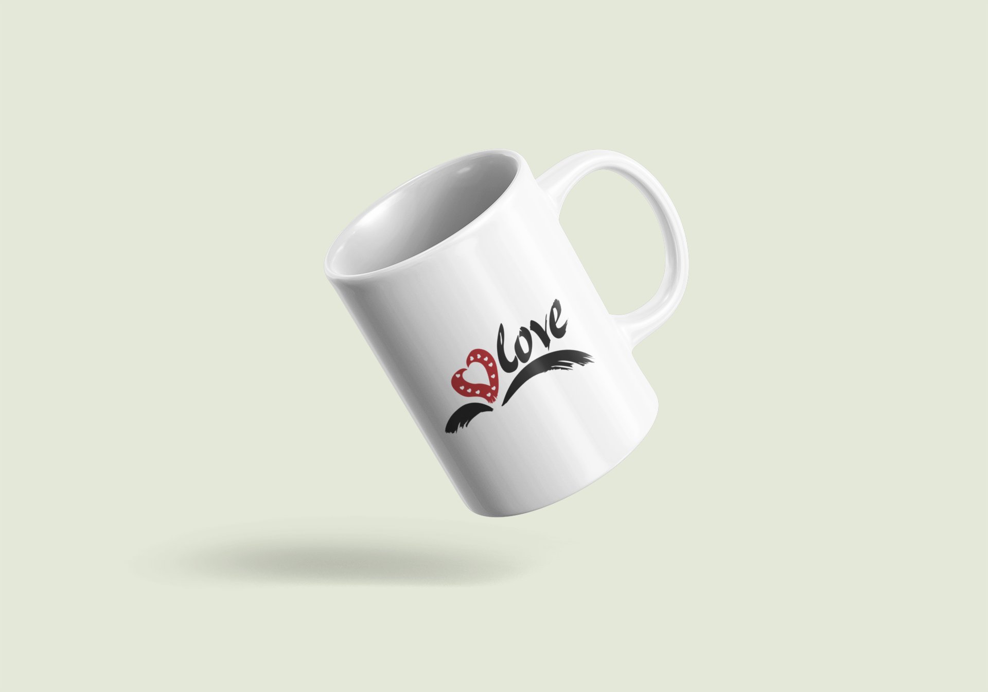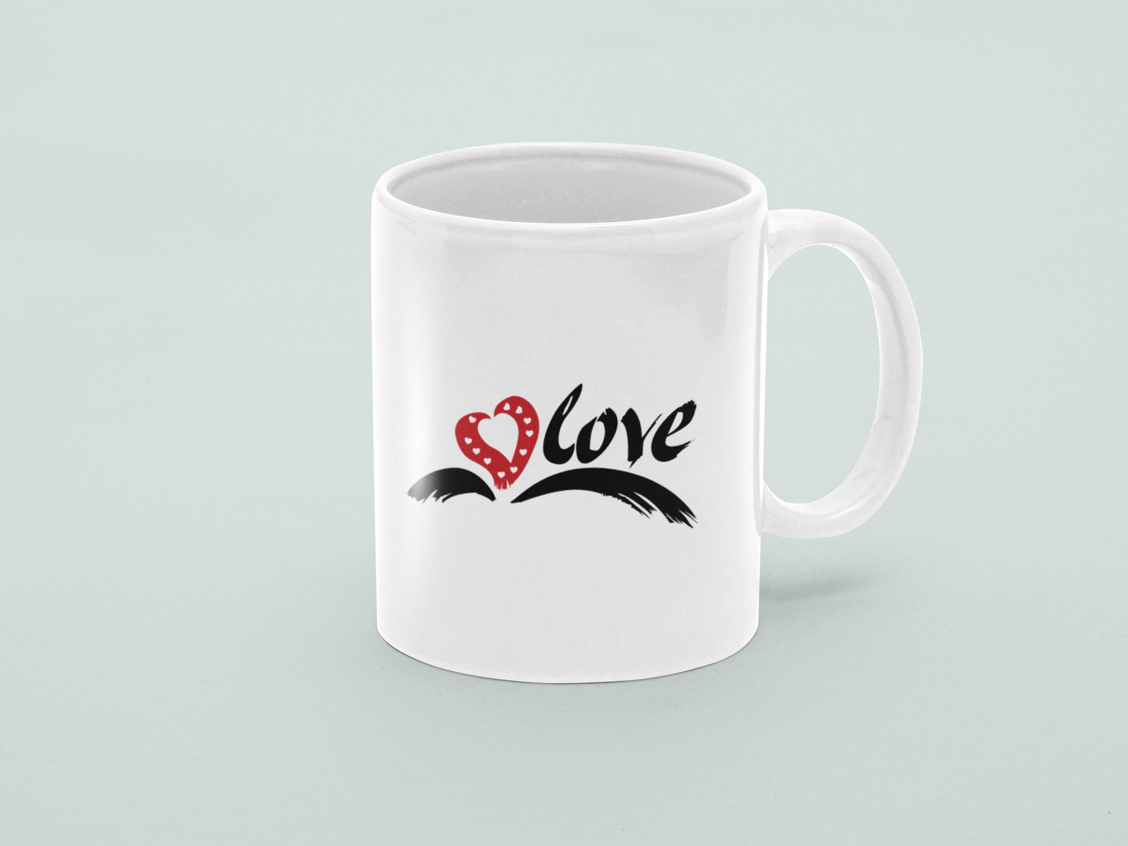 Heart with love text - valentine themed printed ceramic white coffee and tea mugs/ cups