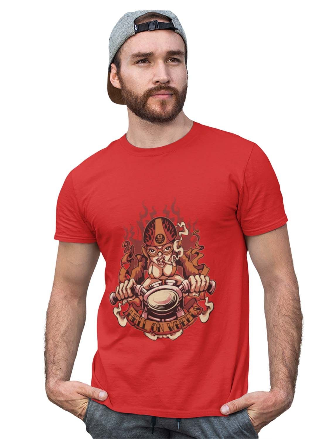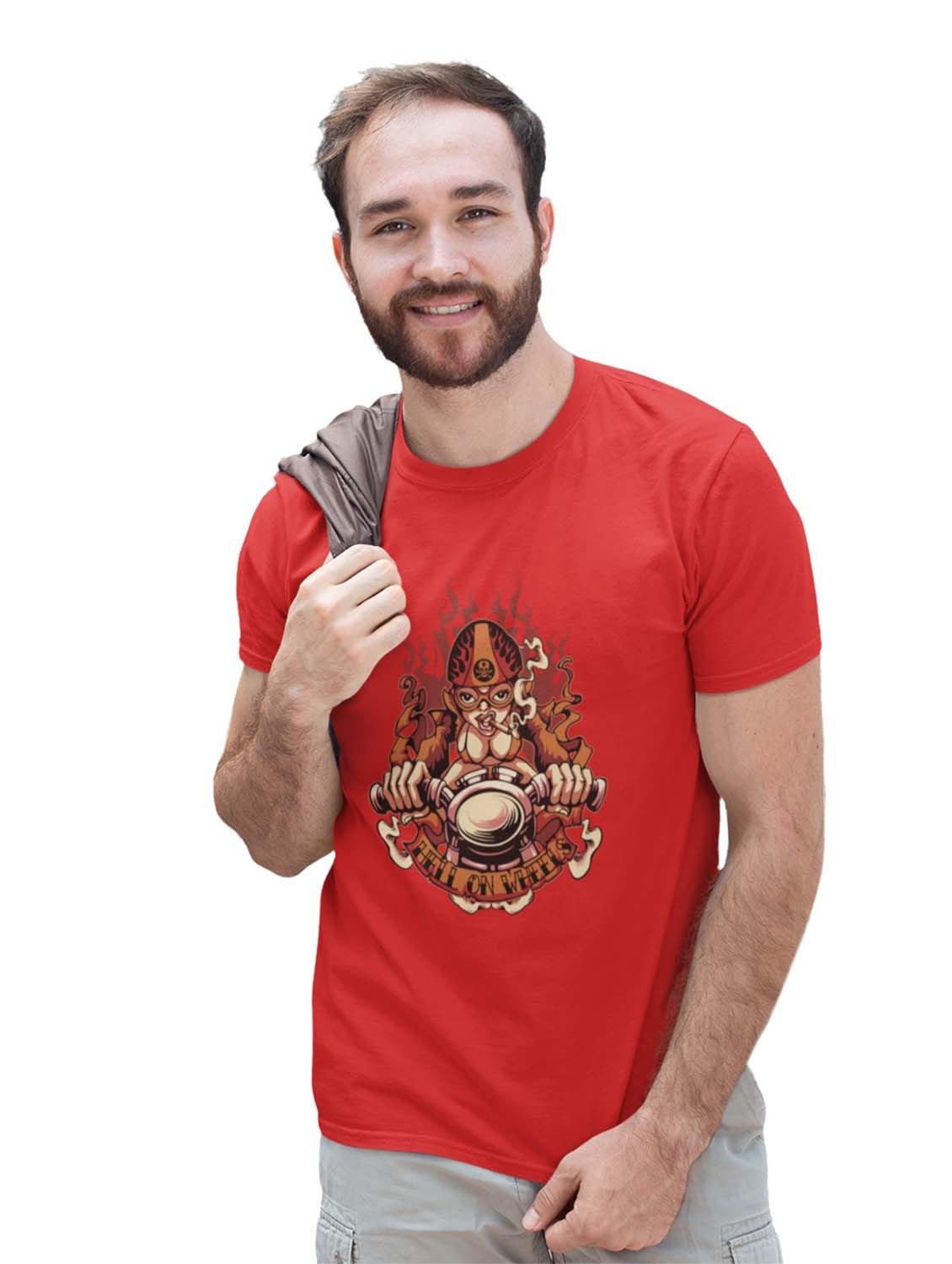 Hell On Wheels Red Round Neck Cotton Half Sleeved T-Shirt with Printed Graphics