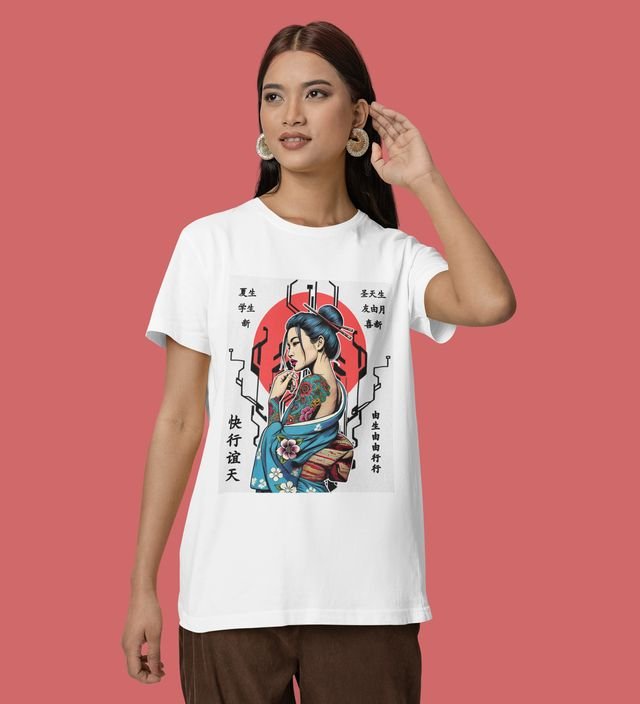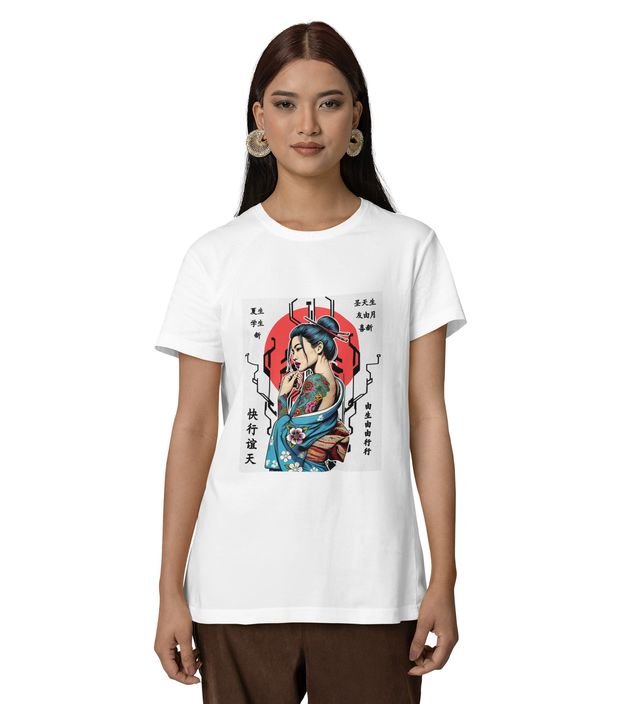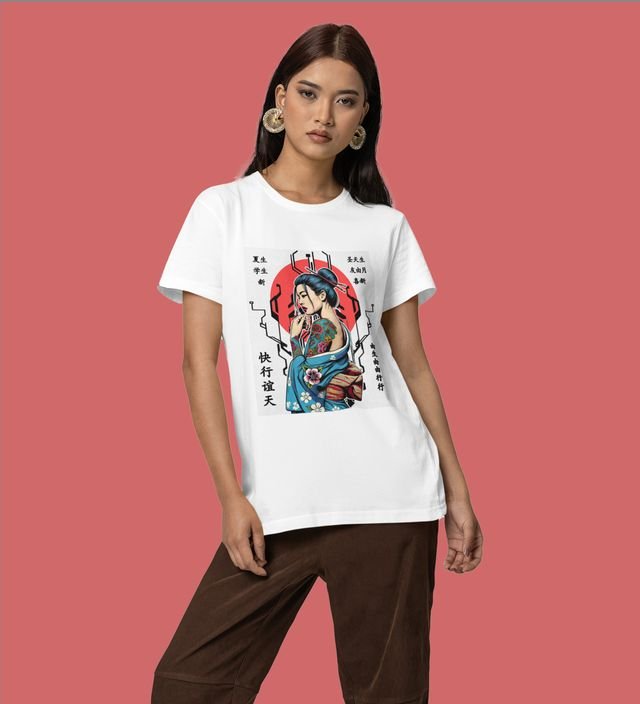 Heritage in Ink: Chinese-Inspired Feminine Design Graphic Printed White T-Shirt