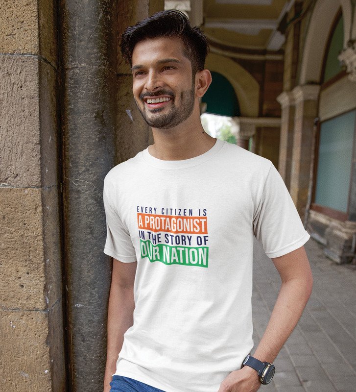 Hero Of The Nation, White Round Neck Printed T-shirts