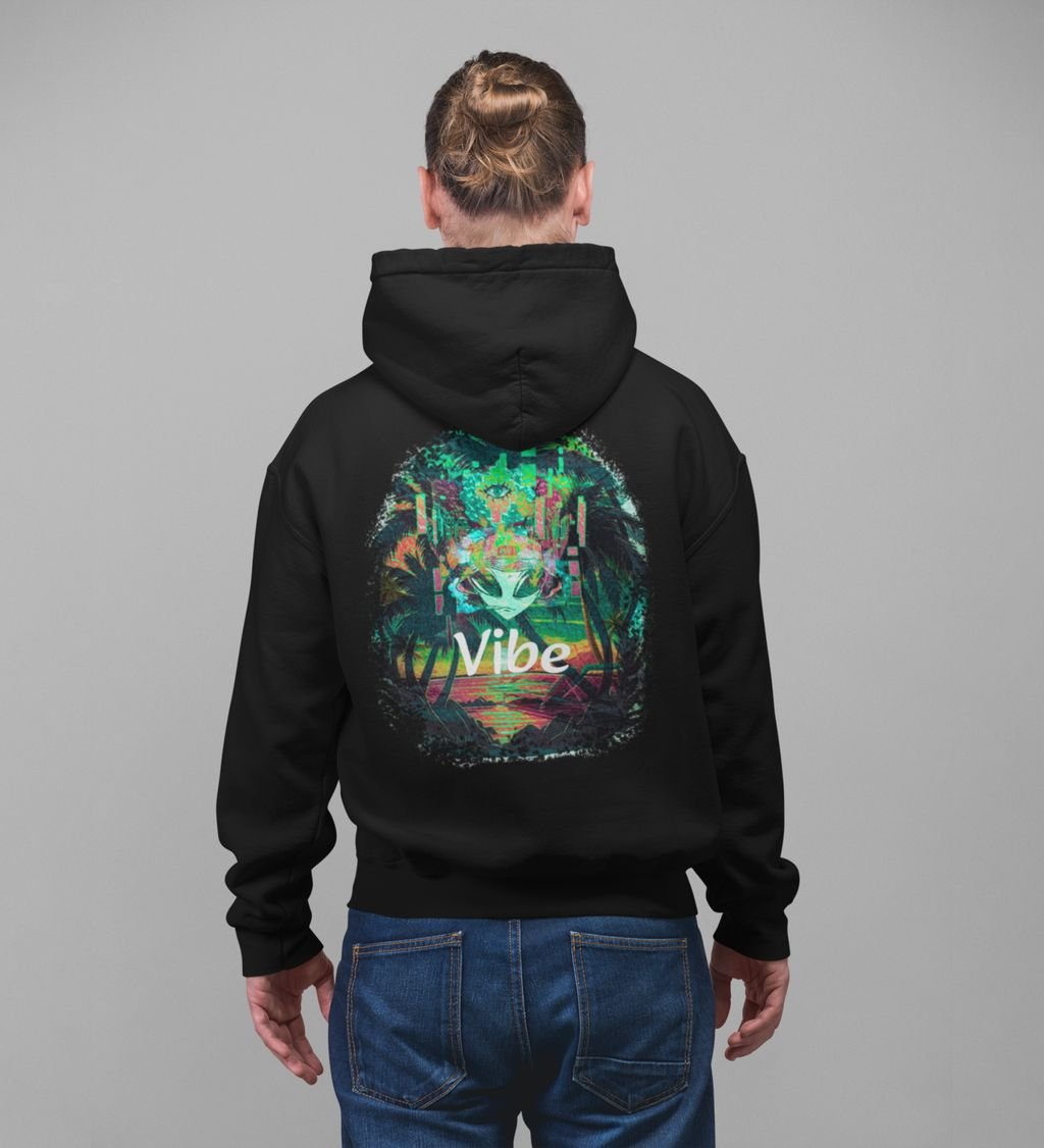 High Spirits and Good Vibes Join the Green Revolution Black Cotton Printed Hoodie For Men