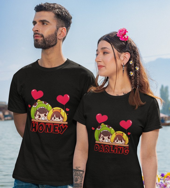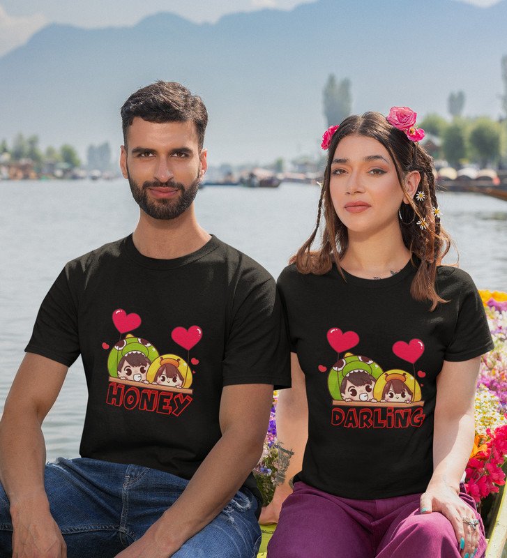 His Darling/Hers Honey Printed Couple (Black) T-shirts