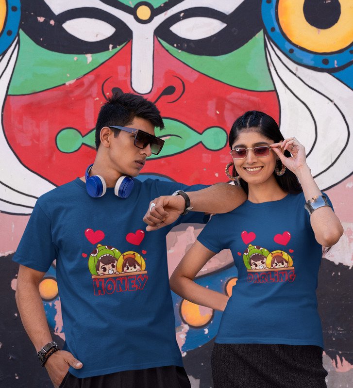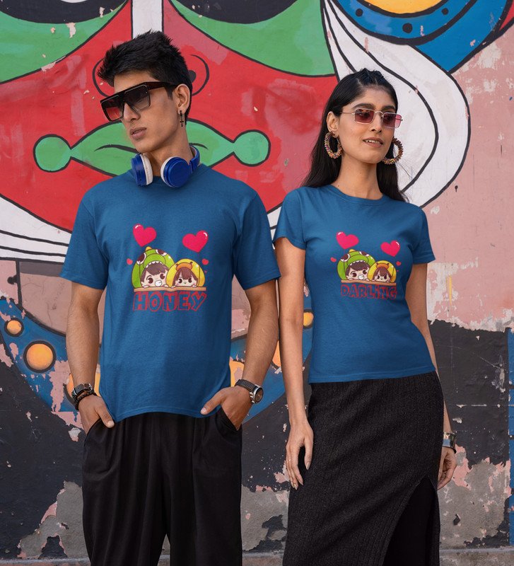 His Darling/Hers Honey Printed Couple (blue) T-shirts